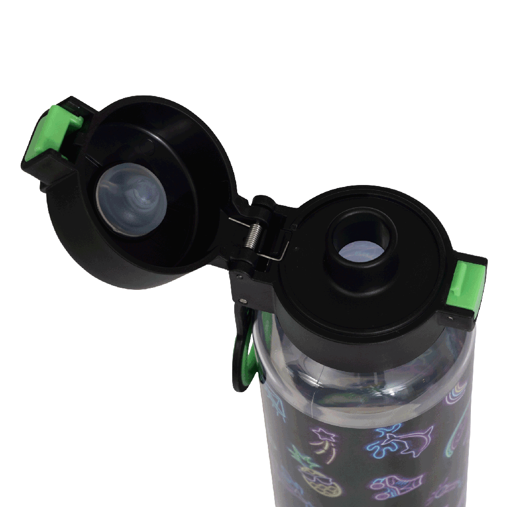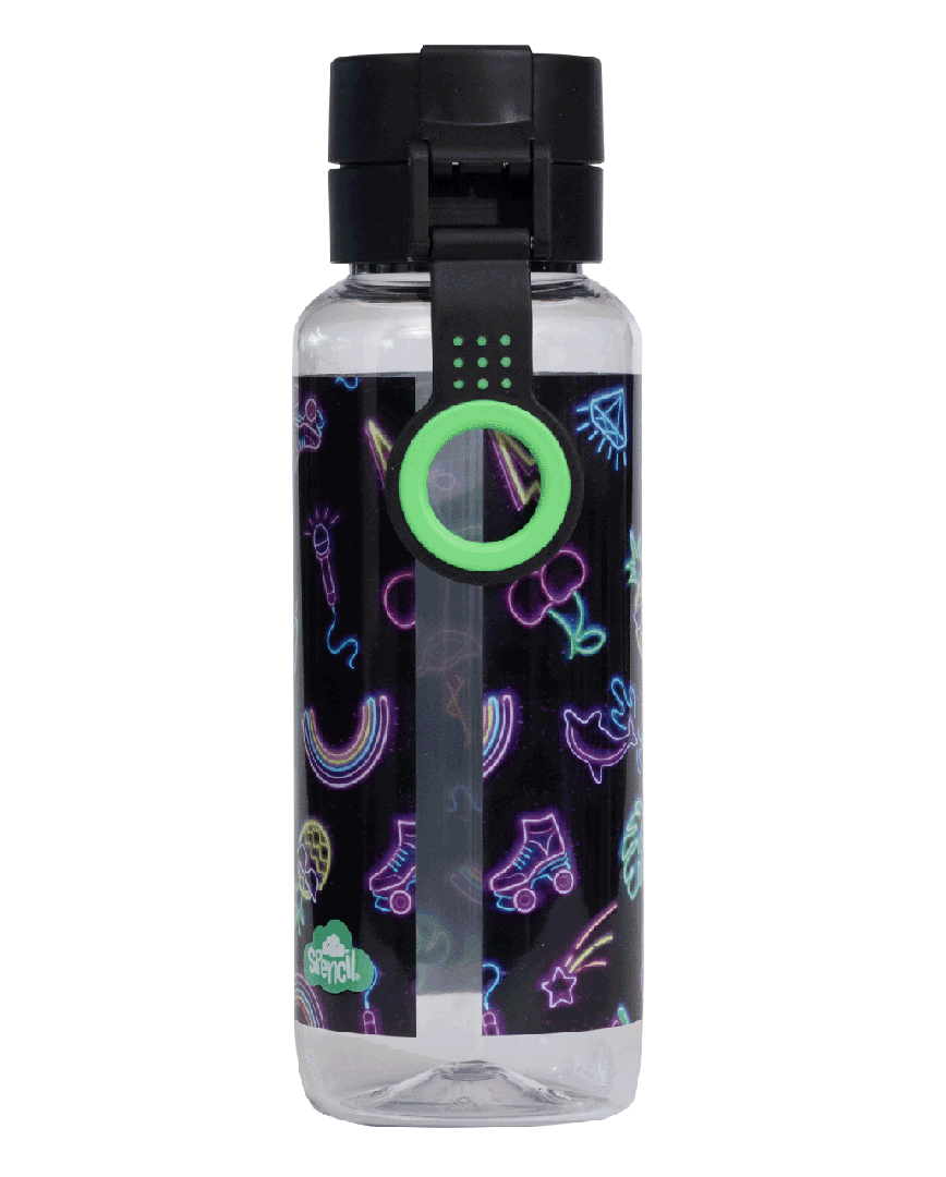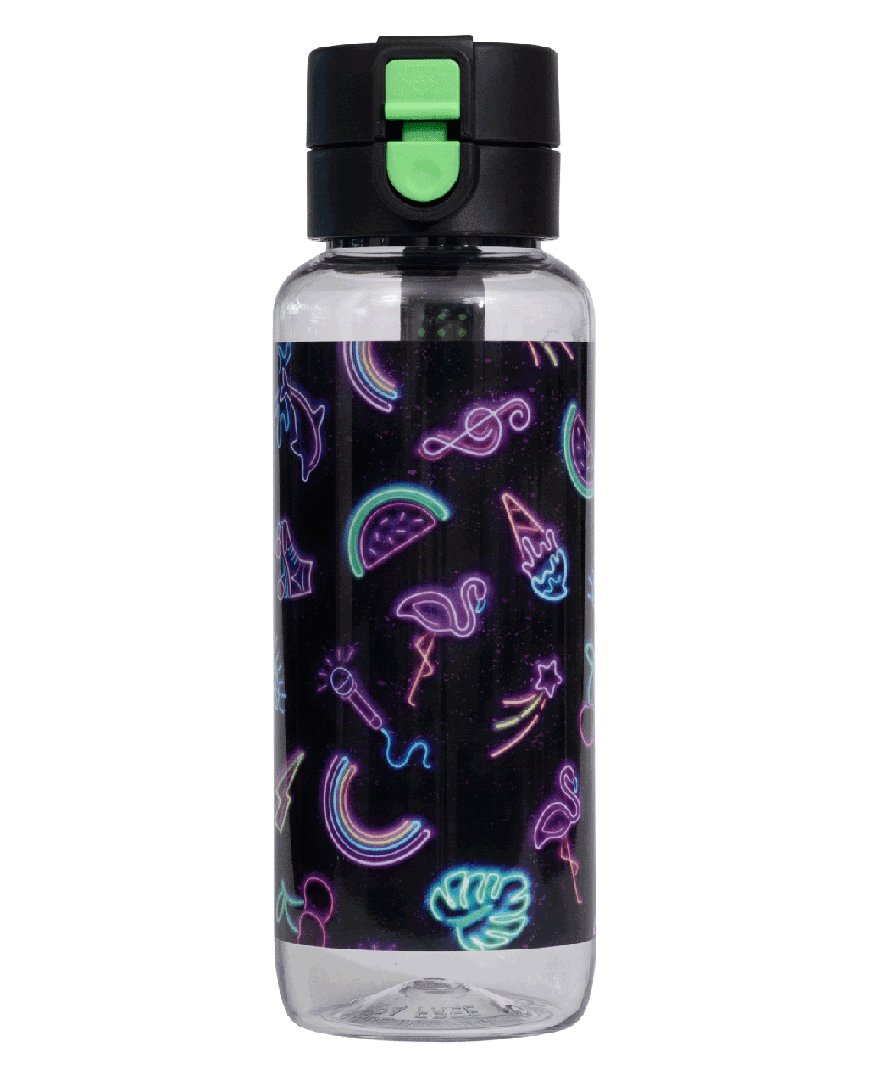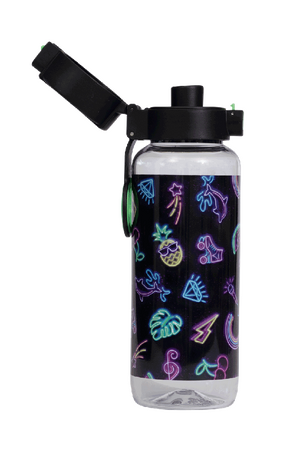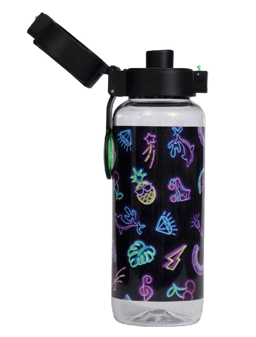 Big Water Bottle 650ml - Neon Party: Step into the Neon Party universe, where vibrant hues dance and quirky patterns play! 90s cool is back — neon style! This fluro-tastic design will have your little groovers rockin’ through their day. With electrifying colours and playful energy, it’s the perfect pick for kids who love to stand out and party like it’s 1999! Do your kids have a thirst for fun? Then this big kids' water bottle with a 650ml capacity is the perfect school and play partner. You don't have to worry because it’s free from nasty materials like BPA and features a lockable click-button lid to prevent spillage disasters.