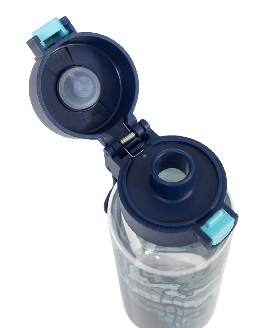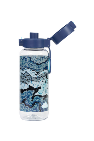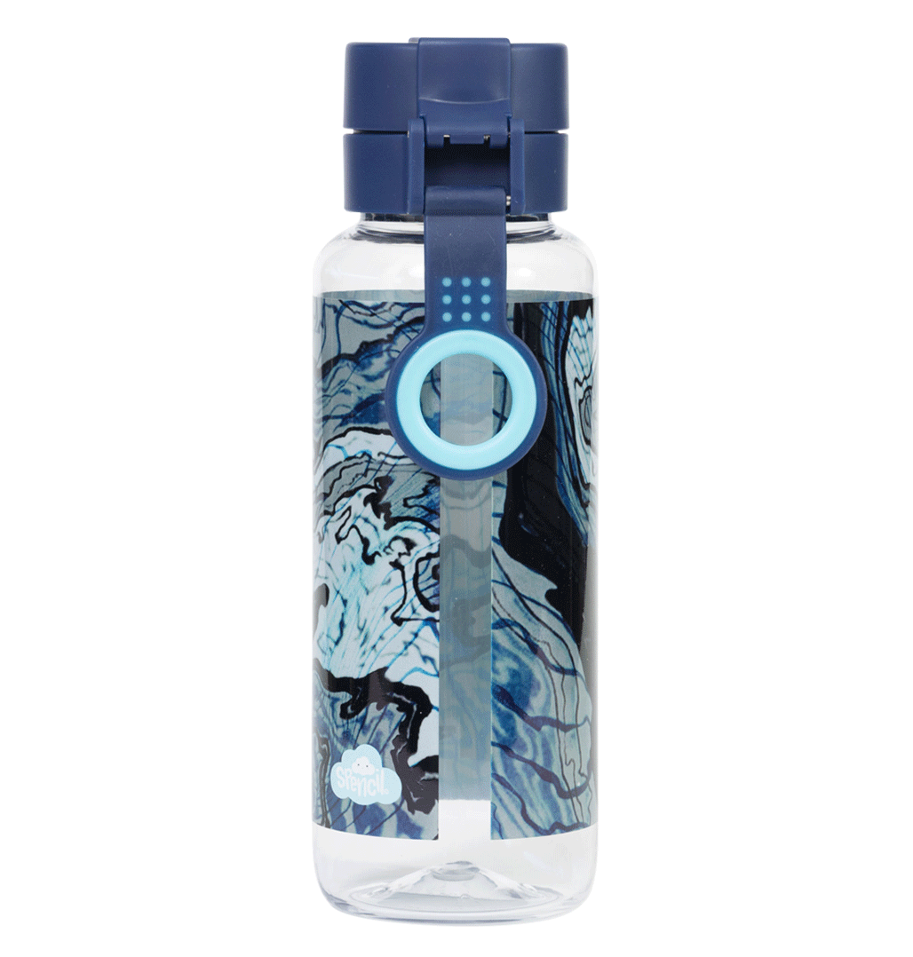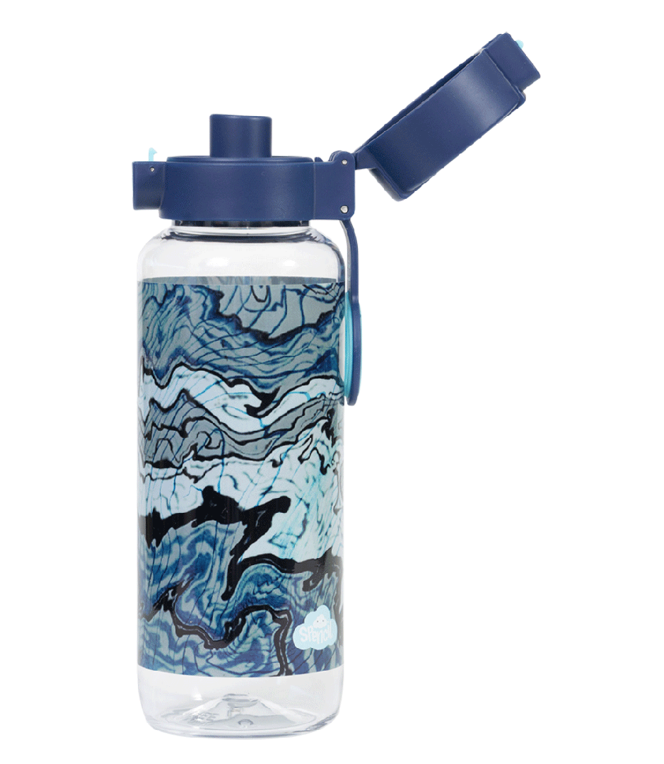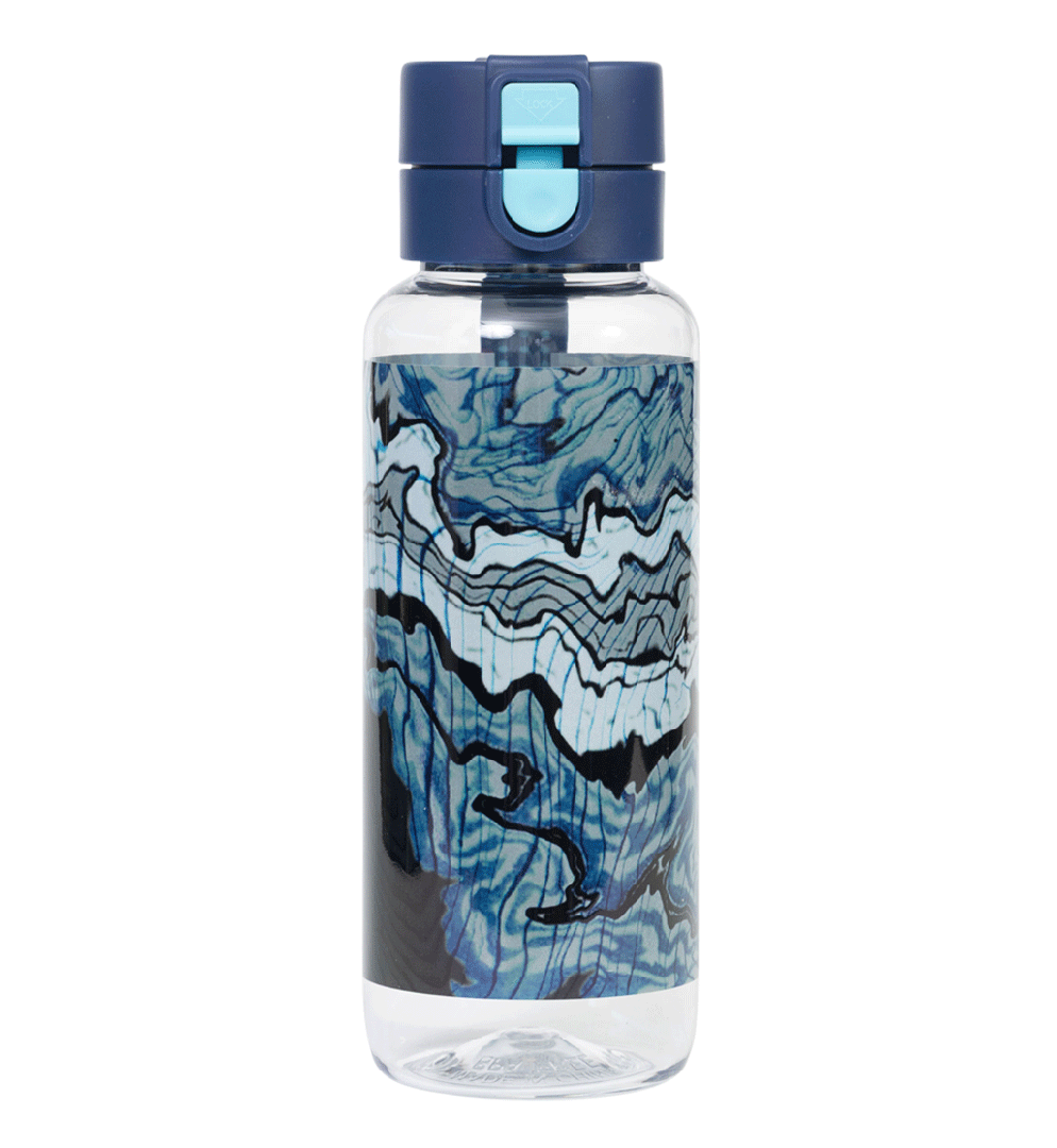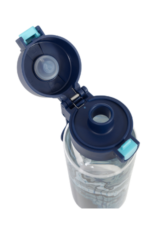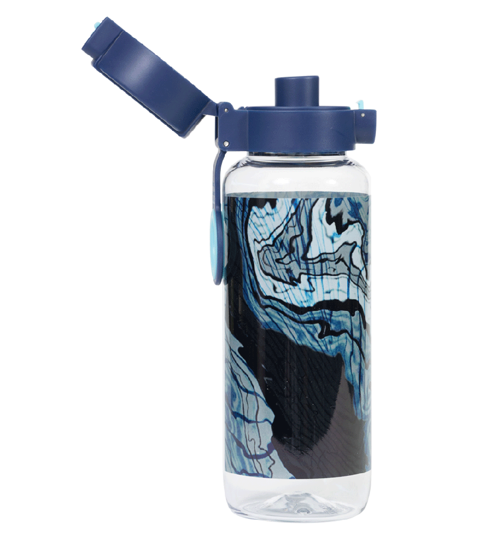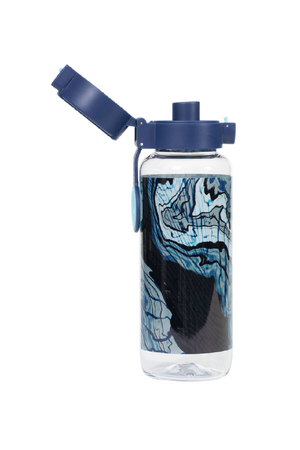 Big Water Bottle 650ml - Ripple Effect: Make waves with Ripple Effect! With swirly lines, inky blues, and cool contours, this design is full of movement and mystery. It’s made for kids who like to go with the flow — but still stand out while they do it! Do your kids have a thirst for fun? Then this big kids' water bottle with a 650ml capacity is the perfect school and play partner. You don't have to worry because it’s free from nasty materials like BPA and features a lockable click-button lid to prevent spillage disasters.