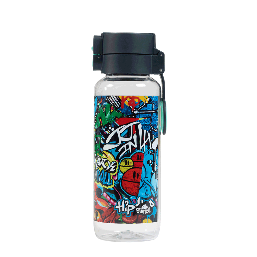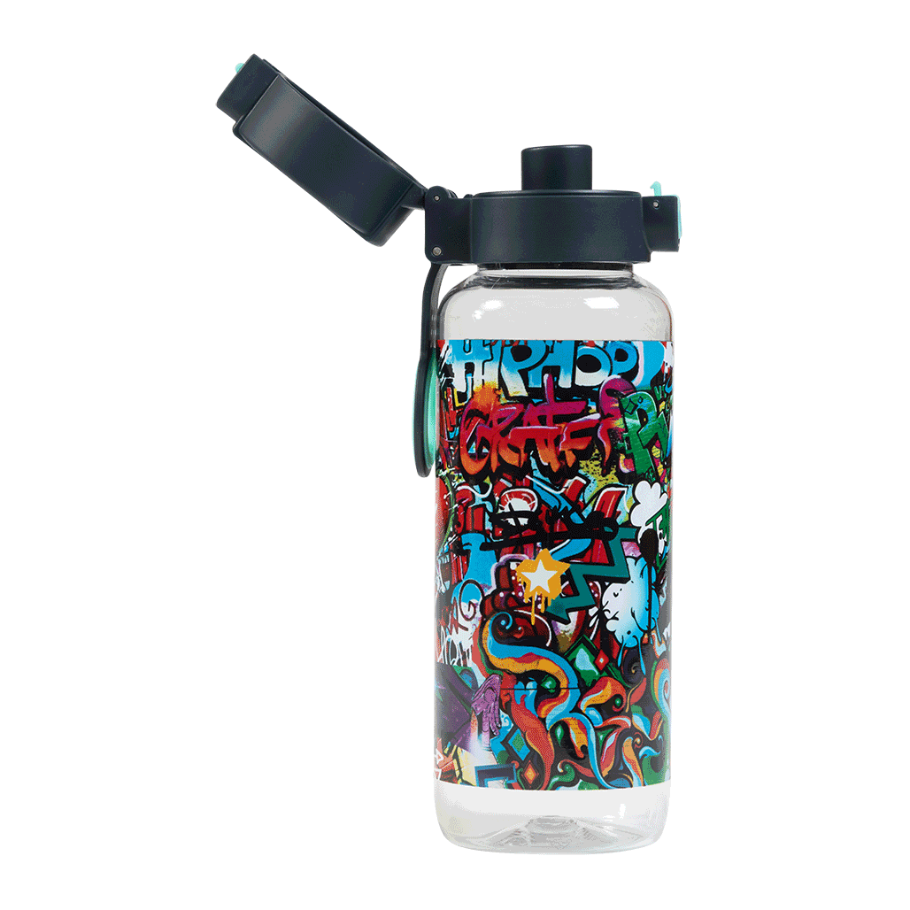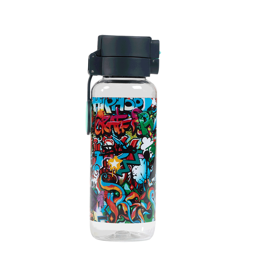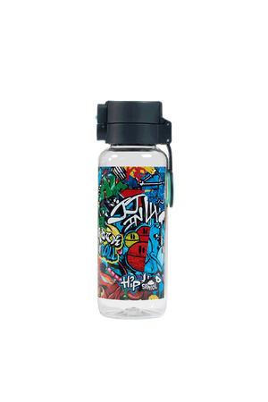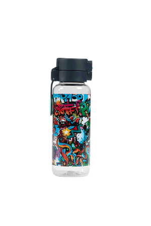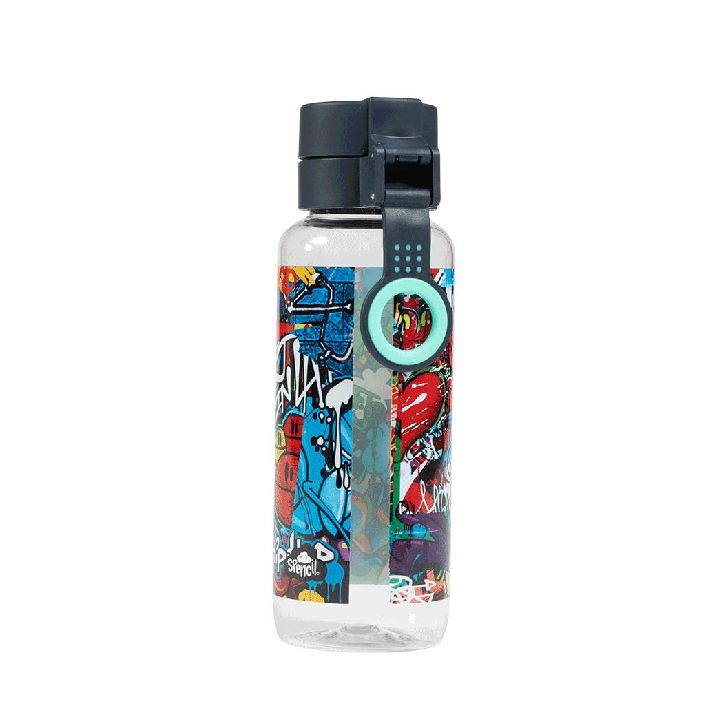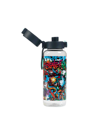 Big Water Bottle 650ml - Street Art: For the rebels with a cause, Street Art is a bold and creative design that celebrates individuality, imagination, and fearless expression! Bursting with energy and attitude, it’s made for kids who love to stand out from the crowd. Do your kids have a thirst for fun? Then this big kids' water bottle with a 650ml capacity is the perfect school and play partner. You don't have to worry because it’s free from nasty materials like BPA and features a lockable click-button lid to prevent spillage disasters.