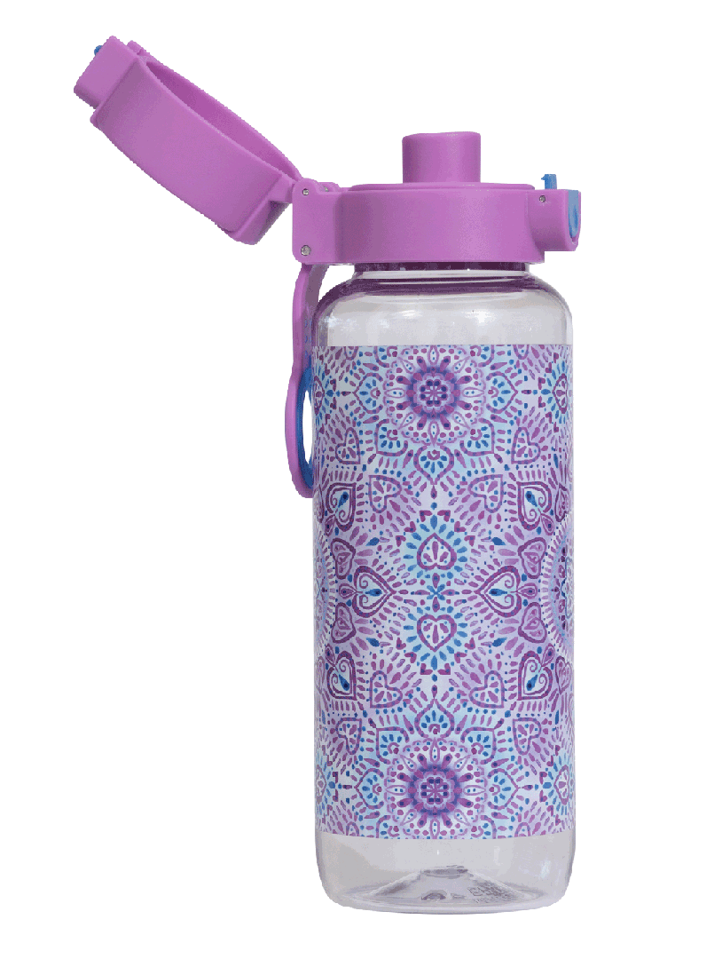 Big Water Bottle 650ml - Sweet Hearts: Spread the love with Sweet Hearts! This gorgeous mandala-inspired design bursts with charm and colour — perfect for anyone who loves to keep things cute and full of joy. Whether at school or on the go, this bottle adds a touch of sweetness to every sip. Do your kids have a thirst for fun? Then this big kids' water bottle with a 650ml capacity is the perfect school and play partner. You don't have to worry because it’s free from nasty materials like BPA and features a lockable click-button lid to prevent spillage disasters.