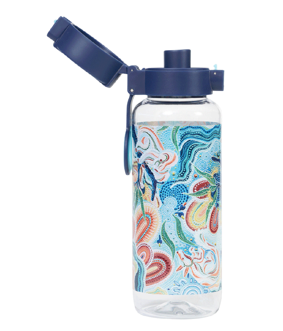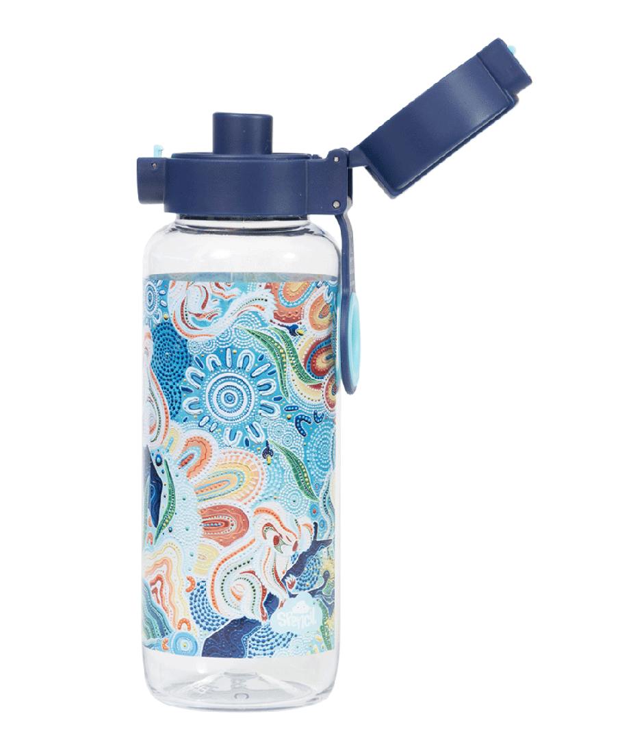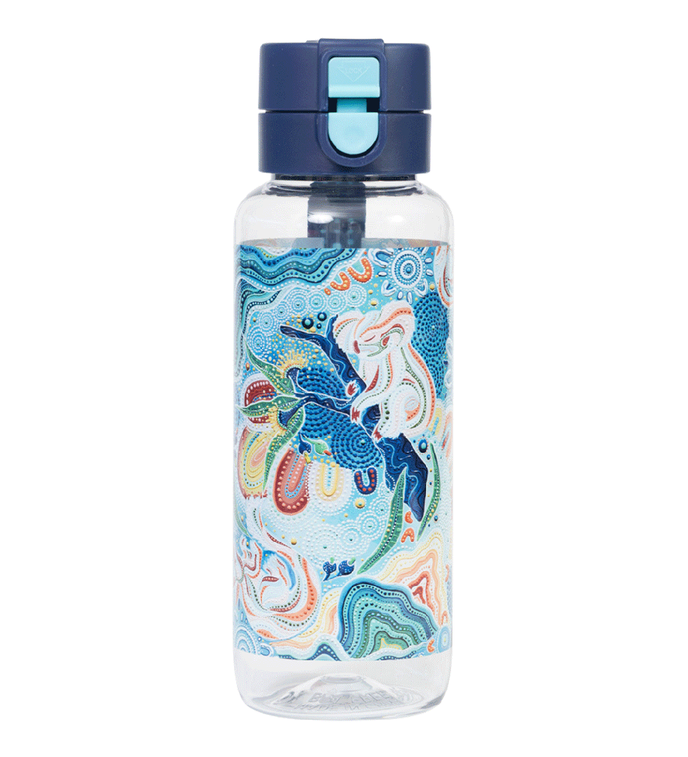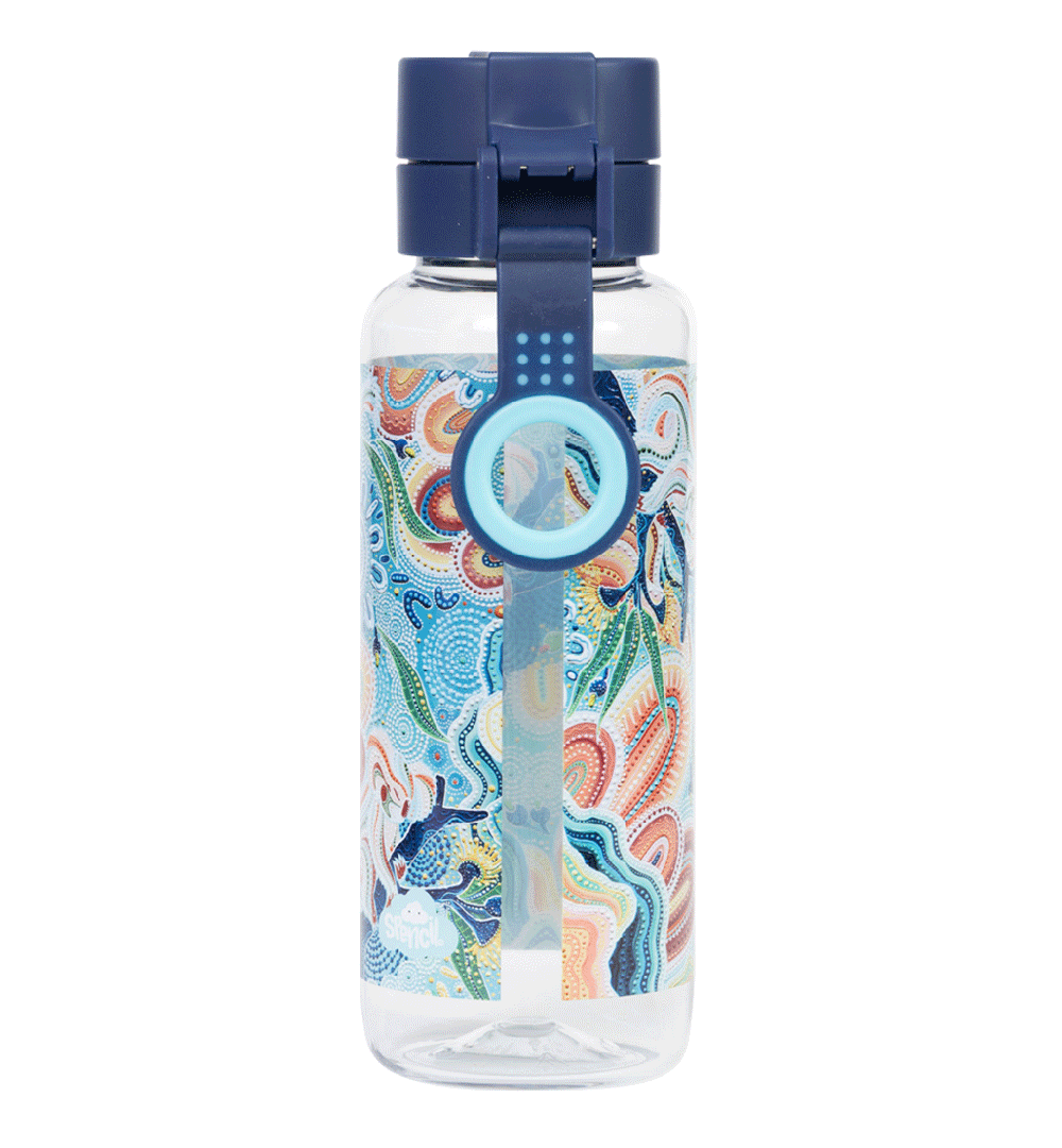 Big Water Bottle 650ml - Wani-Wani Wantina: Wani-Wani Wantina means “To Play Side By Side” in the Kalkadoon language — a beautiful reminder of friendship and togetherness. Created by Indigenous artist sisters Brooke and Jaide Sutton for the Spencil Australian Indigenous Artist Collaboration, this design features charming koalas and bilbies in soft, hand-drawn detail. Each piece celebrates wildlife, culture, and the sisters’ exquisite artistry. Do your kids have a thirst for fun? Then this big kids' water bottle with a 650ml capacity is the perfect school and play partner. You don't have to worry because it’s free from nasty materials like BPA and features a lockable click-button lid to prevent spillage disasters.