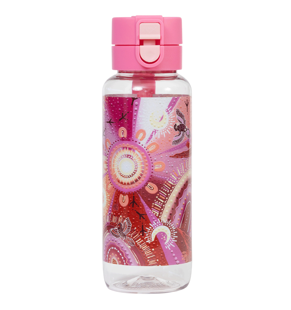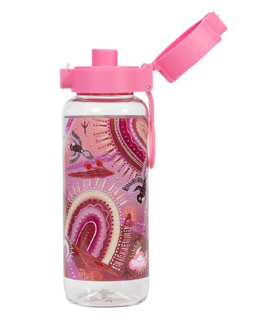 Big Water Bottle 650ml - Yarrawala: Yarrawala is the original painting of then 16-year-old emerging Kalkadoon Aboriginal artist Brooke Sutton, created in collaboration with Spencil. This design marks Spencil’s first-ever artist collaboration — and we are over the moon that Yarrawala is the result! Brooke’s talent and connection to culture shine through in this stunning artwork, making each piece both meaningful and inspiring. Do your kids have a thirst for fun? Then this big kids' water bottle with a 650ml capacity is the perfect school and play partner. You don't have to worry because it’s free from nasty materials like BPA and features a lockable click-button lid to prevent spillage disasters.