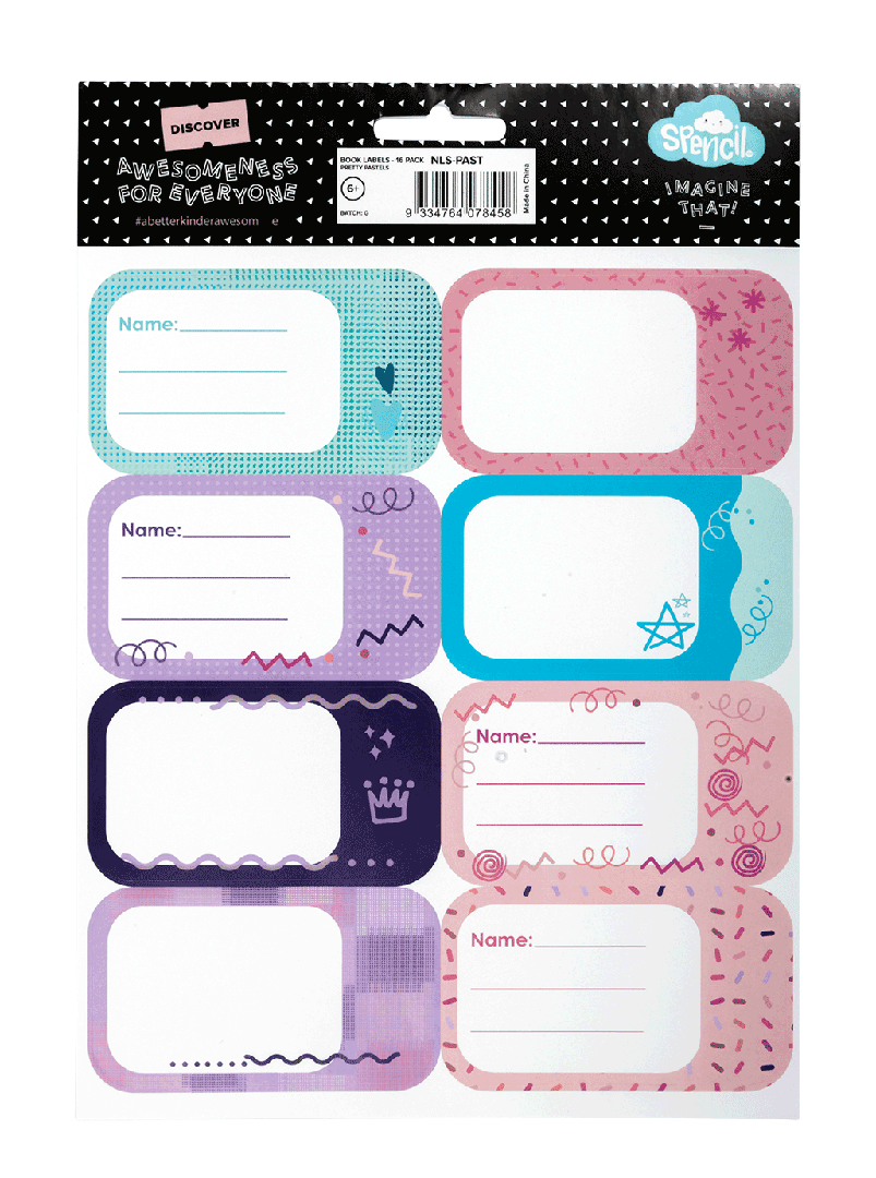 Book Labels - Pretty Pastels: Pretty, playful, and perfectly pastel this design is made for kids who love a splash of soft colour with a stylish twist. Pastel Plaid brings a gentle pop of fun that's as sweet and charming as you are! The kiddos will never mix up their books again with these gorgeous book name labels. Not your average plain label, the cute designs bring a bit of fun into the school day! With blank and lined options for easy writing, there is space for your kid's name and subject on each of the 16 assorted labels. Perfect for school books as well as Spencil book covers to make them even more re-useable, year after year!