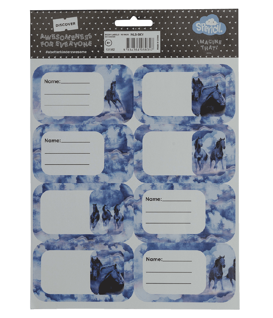 Book Labels - Sky Dancer: The kiddos will never mix up their books again with these gorgeous book name labels. Not your average plain label, the cute designs bring a bit of fun into the school day! With blank and lined options for easy writing, there is space for your kid's name and subject on each of the 16 assorted labels. Perfect for school books as well as Spencil book covers to make them even more re-useable, year after year!
