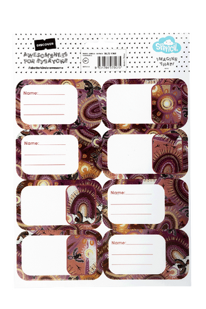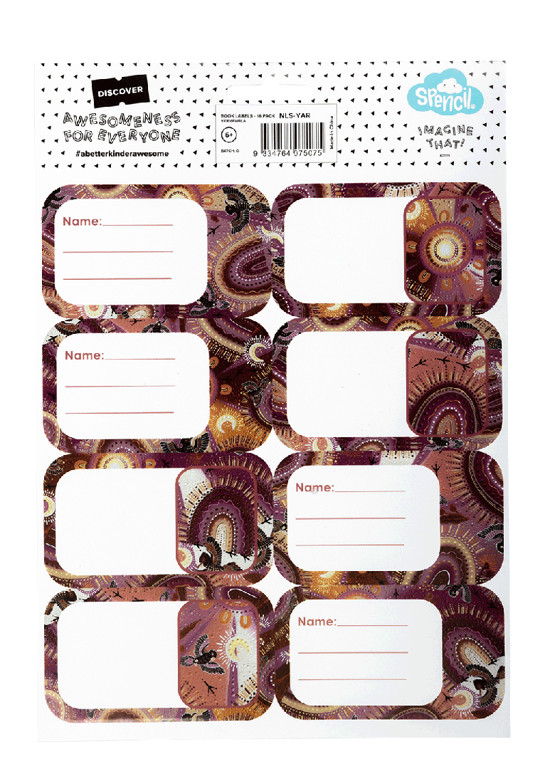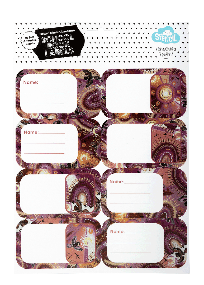 Book Labels - Yarrawala: Yarrawala is the original painting of then 16 year old emerging Kalkadoon Aboriginal artist Brooke Sutton, produced in collaboration with Spencil. This is Spencil’s first ever artist collaboration and we are over the moon that Yarrawala is the result. We searched far and wide for an artist and Brooke epitomises everything we could want in a collaboration of this kind. The kiddos will never mix up their books again with these gorgeous book name labels. Not your average plain label, the cute designs bring a bit of fun into the school day! With blank and lined options for easy writing, there is space for your kid's name and subject on each of the 16 assorted labels. Perfect for school books as well as Spencil book covers to make them even more re-useable, year after year!