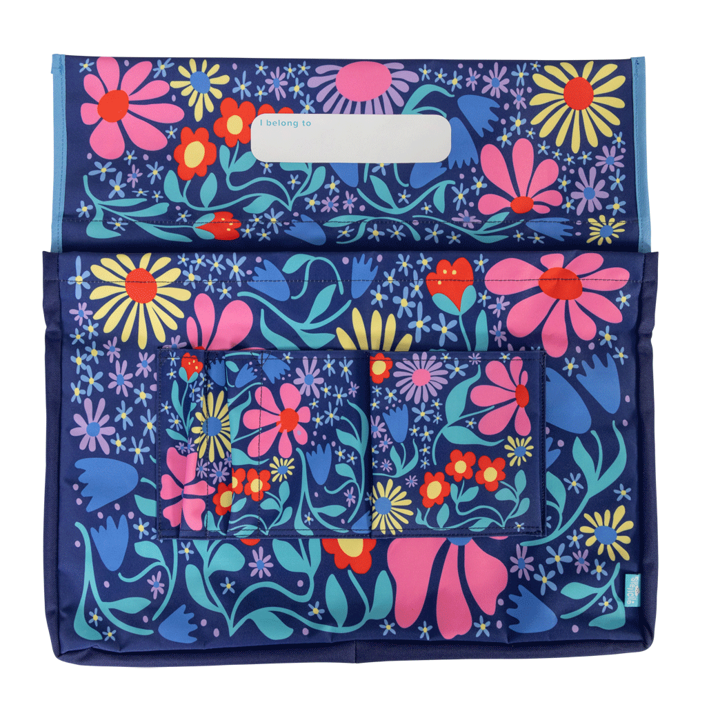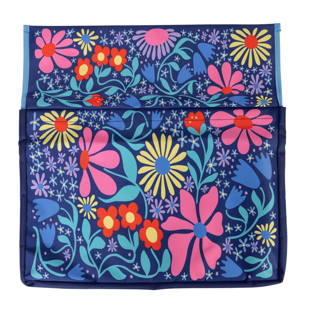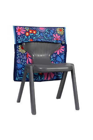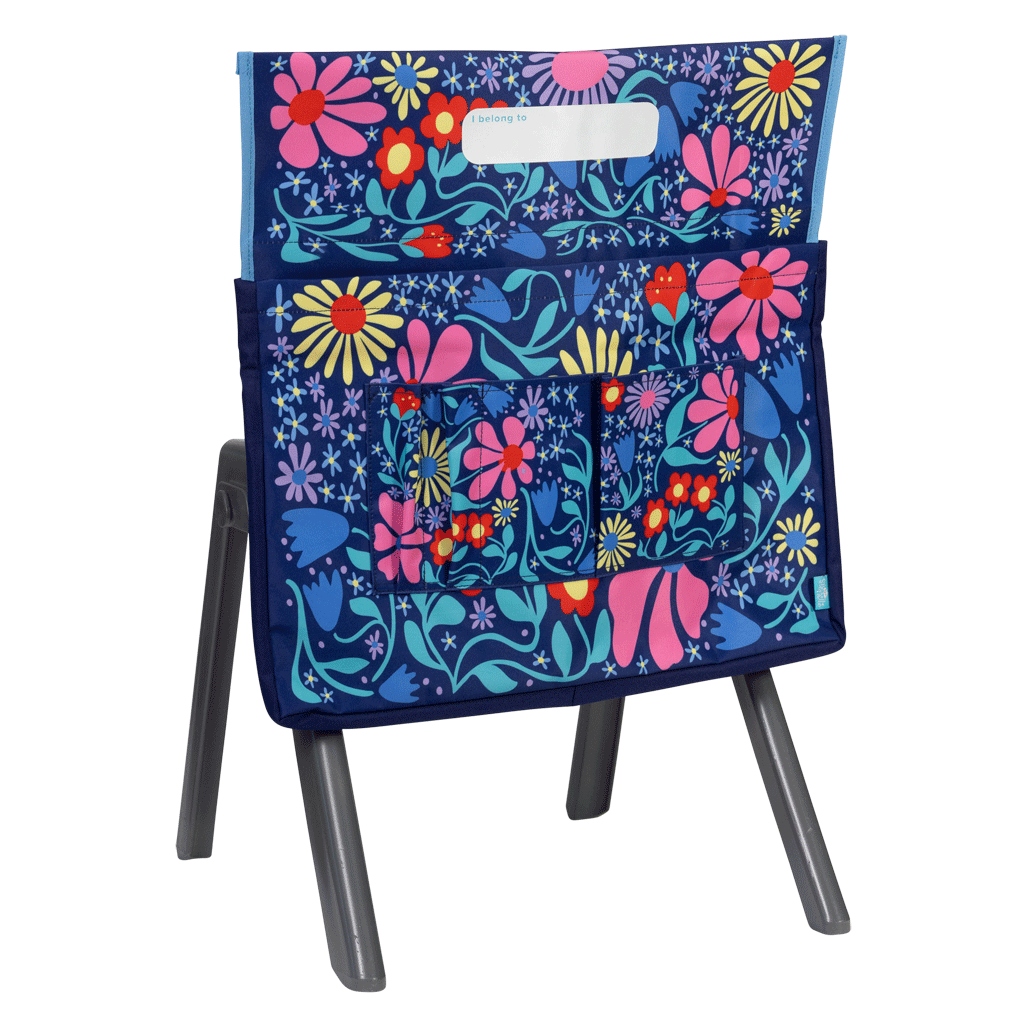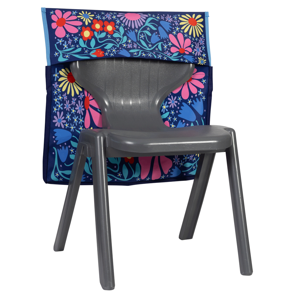 Chair Organiser - Flower Fun: Bright, bold, and blooming with personality! Flower Fun is full of colourful petals dancing on a deep navy background - perfect for kids who love to stand out with a splash of playful style. It's a floral fiesta made to turn heads!