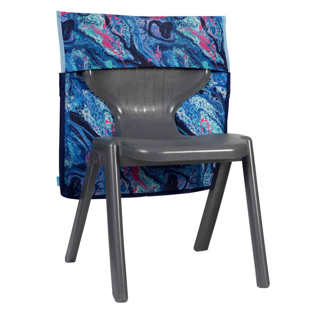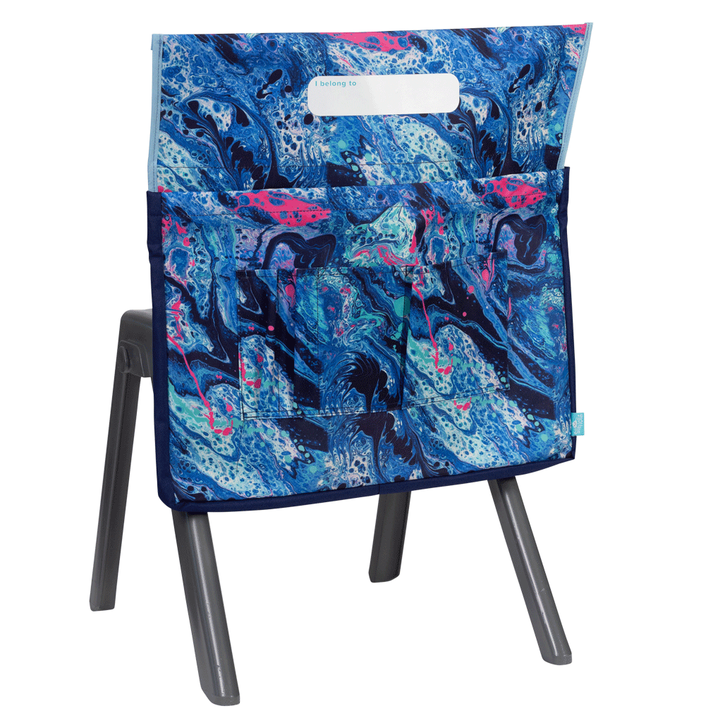 Chair Organiser - Liquid Marble: Dive into a swirl of colour! Liquid Marble mixes neons and navy in a paint-pour explosion that's full of energy. With drips, splashes and marbled magic, it's made for kids who love to get creative and a little bit messy (in the best way!).