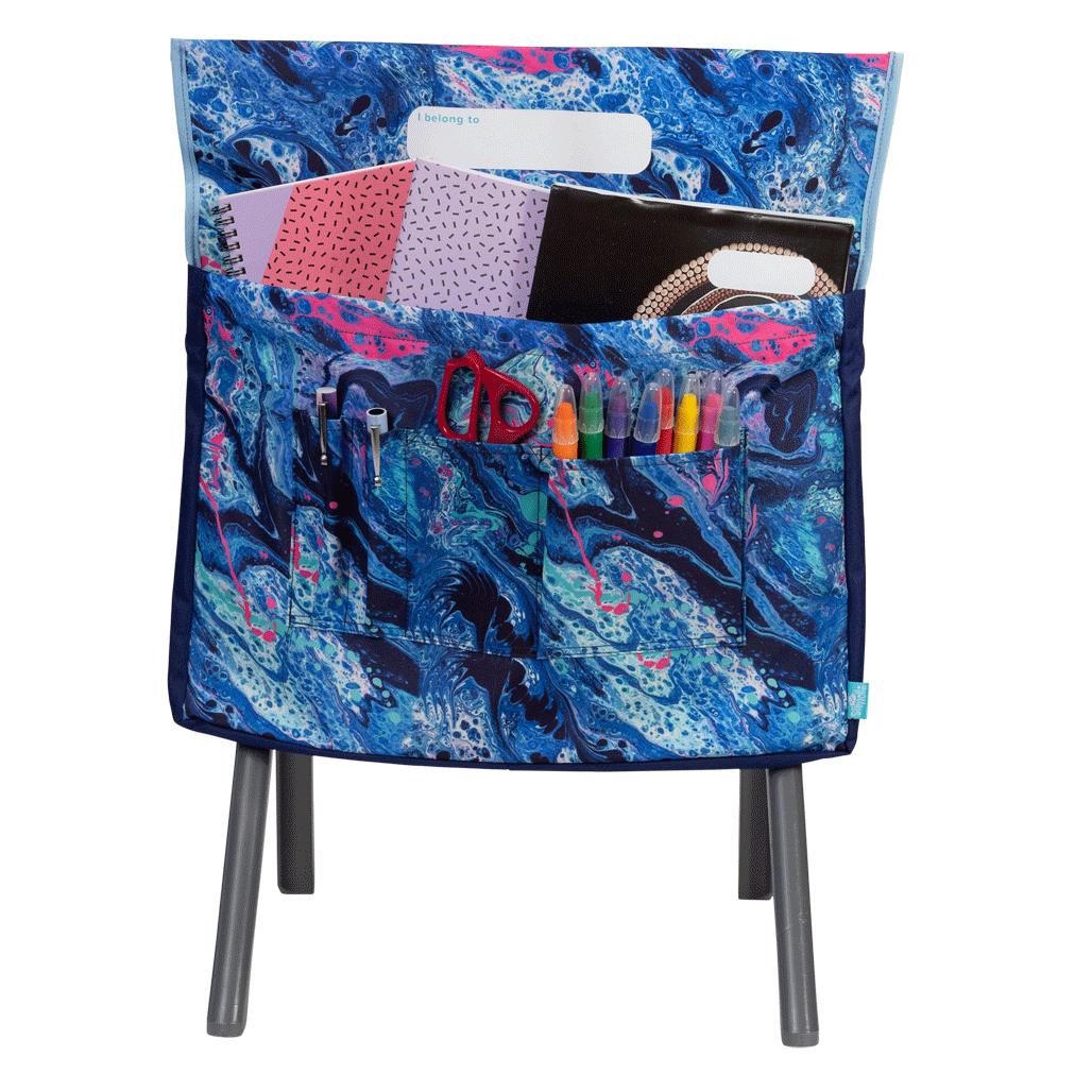 You and the kids will love brightening up their desk area with this designer Chair Bag Organiser with back storage pocket and velcro fasteners to suit kids school chairs and home office/bedroom chairs. Turn your kid's ordinary chair into an added storage space. It's durable, it's spacious and can fit most school and at home kids chairs!