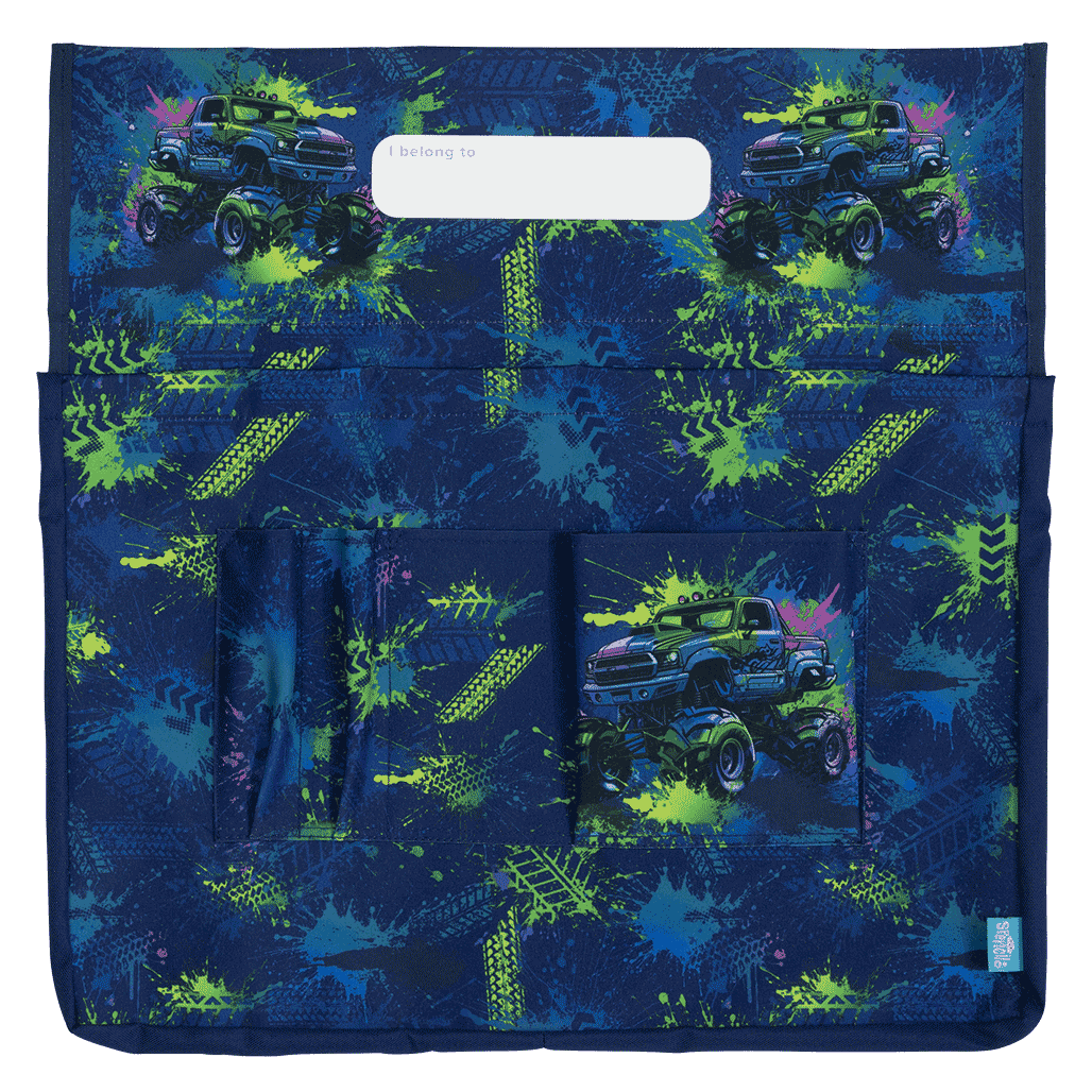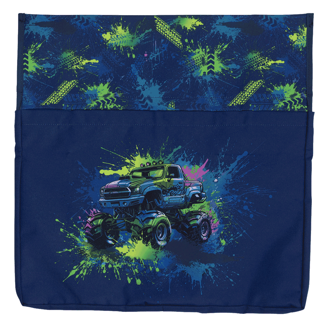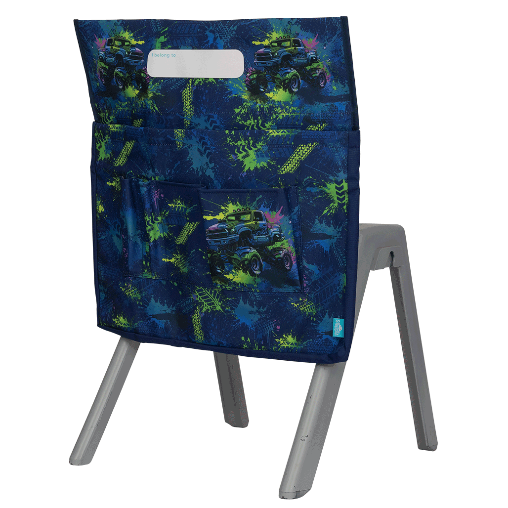 Chair Organiser - Mega Wheels: Rev up with Mega Wheels! Featuring a bold design of monster trucks and massive wheels, this one is for the thrill-seekers and adrenaline junkies. Perfect for those who love to crush each day and ride high over any obstacle!