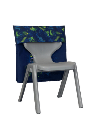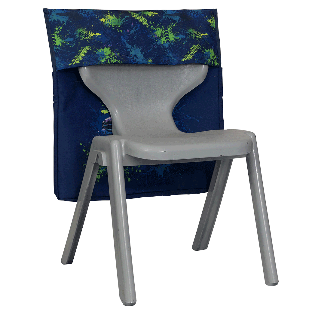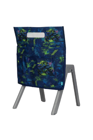 Adjustable velcro tabs allow chair bag to fit most school and kids chairs Back pocket storage Large name label, front and centre, for easy identification 35 mm gusset for awesome roominess Extra strong reinforced box stitching and inside binding for durability Additional front stationery pockets (4) to keep your pens and pencils handy