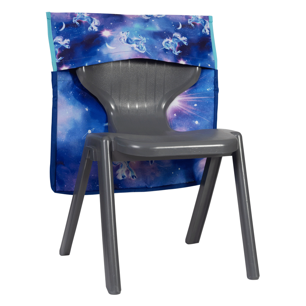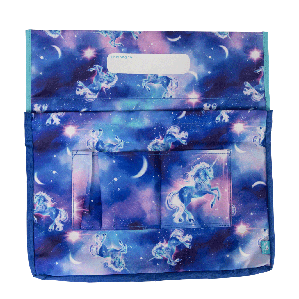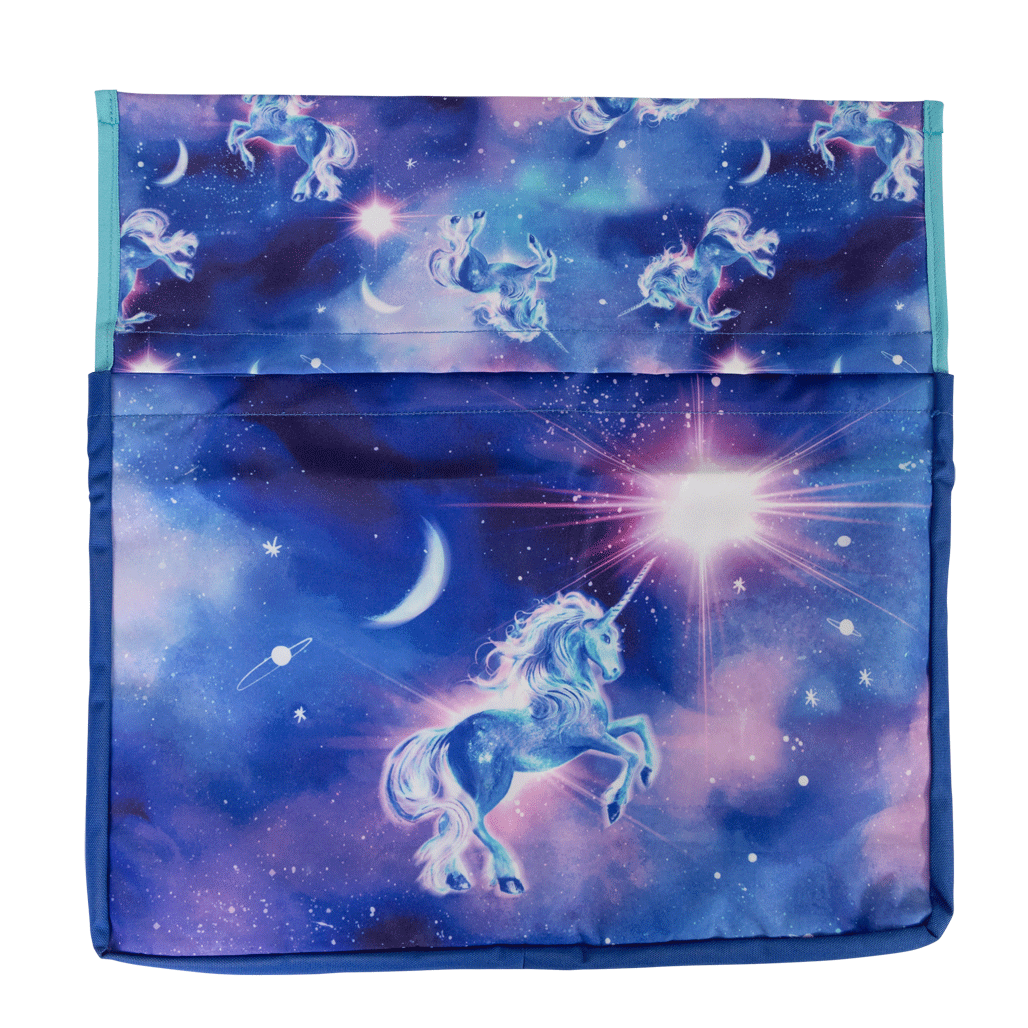 Chair Organiser - Moonlit Unicorn: Under a starlit sky, magic comes to life! Moonlit Unicorn is a dreamy swirl of twilight colours, sparkling stars and one truly majestic unicorn. It's pure enchantment for kids who believe in a universe full of wonder.
