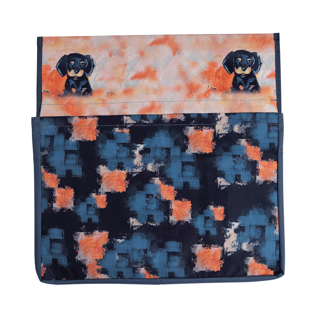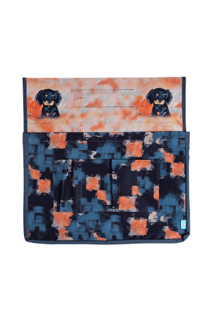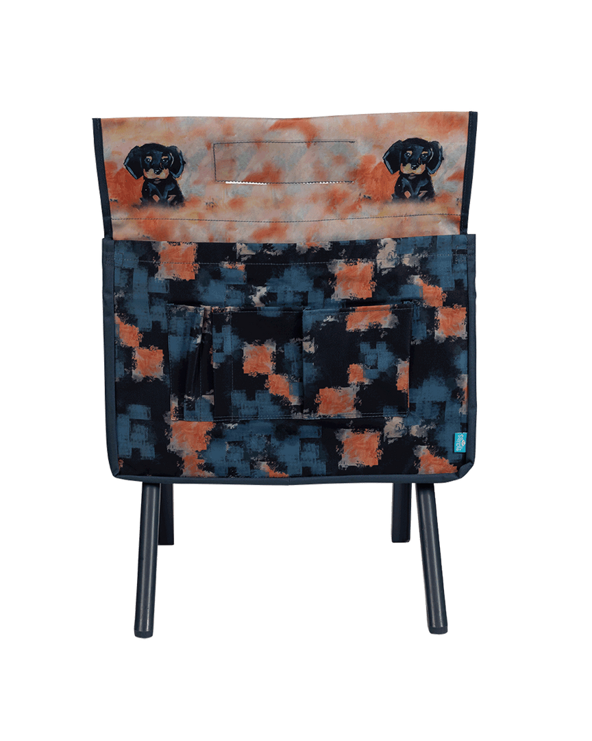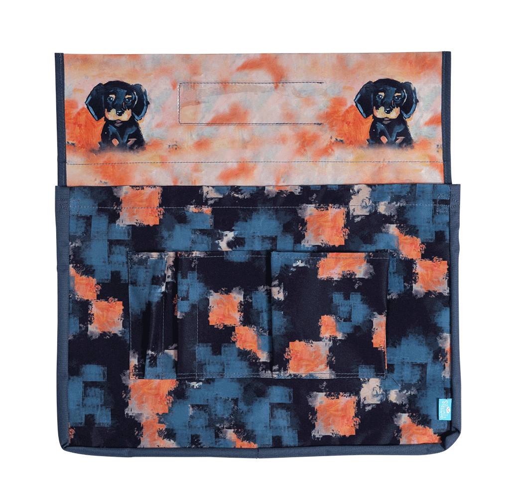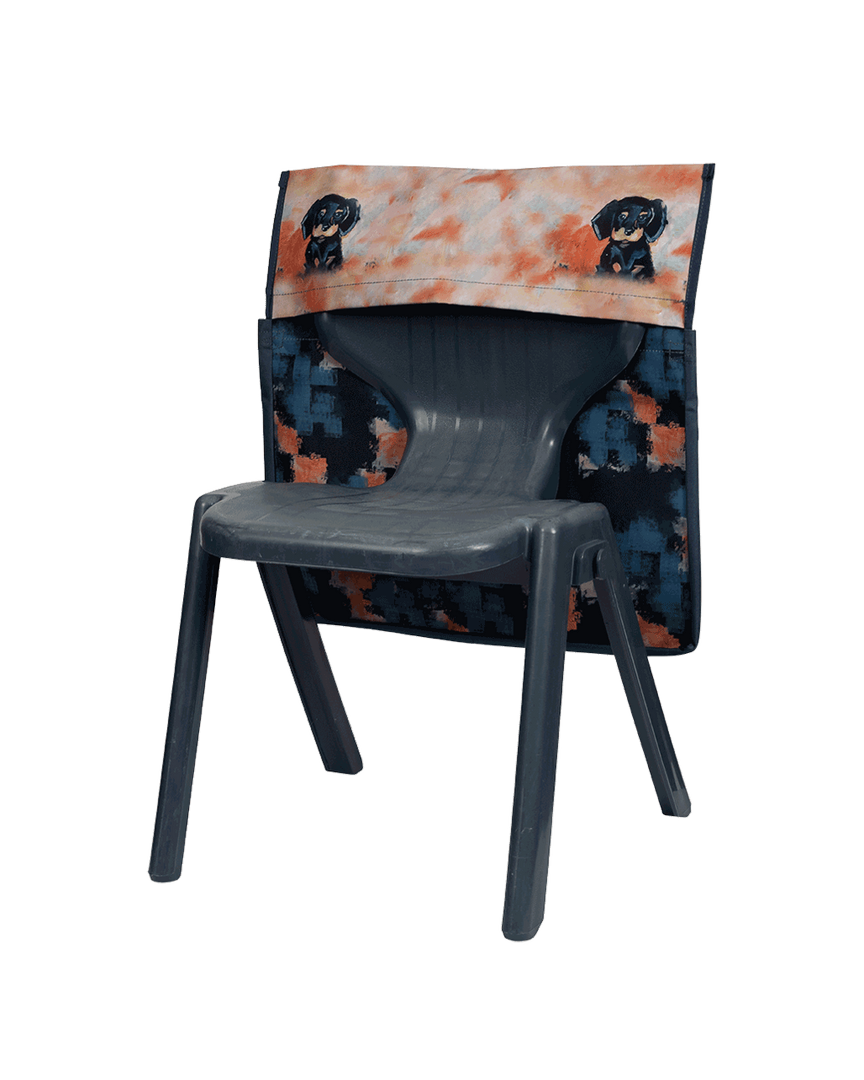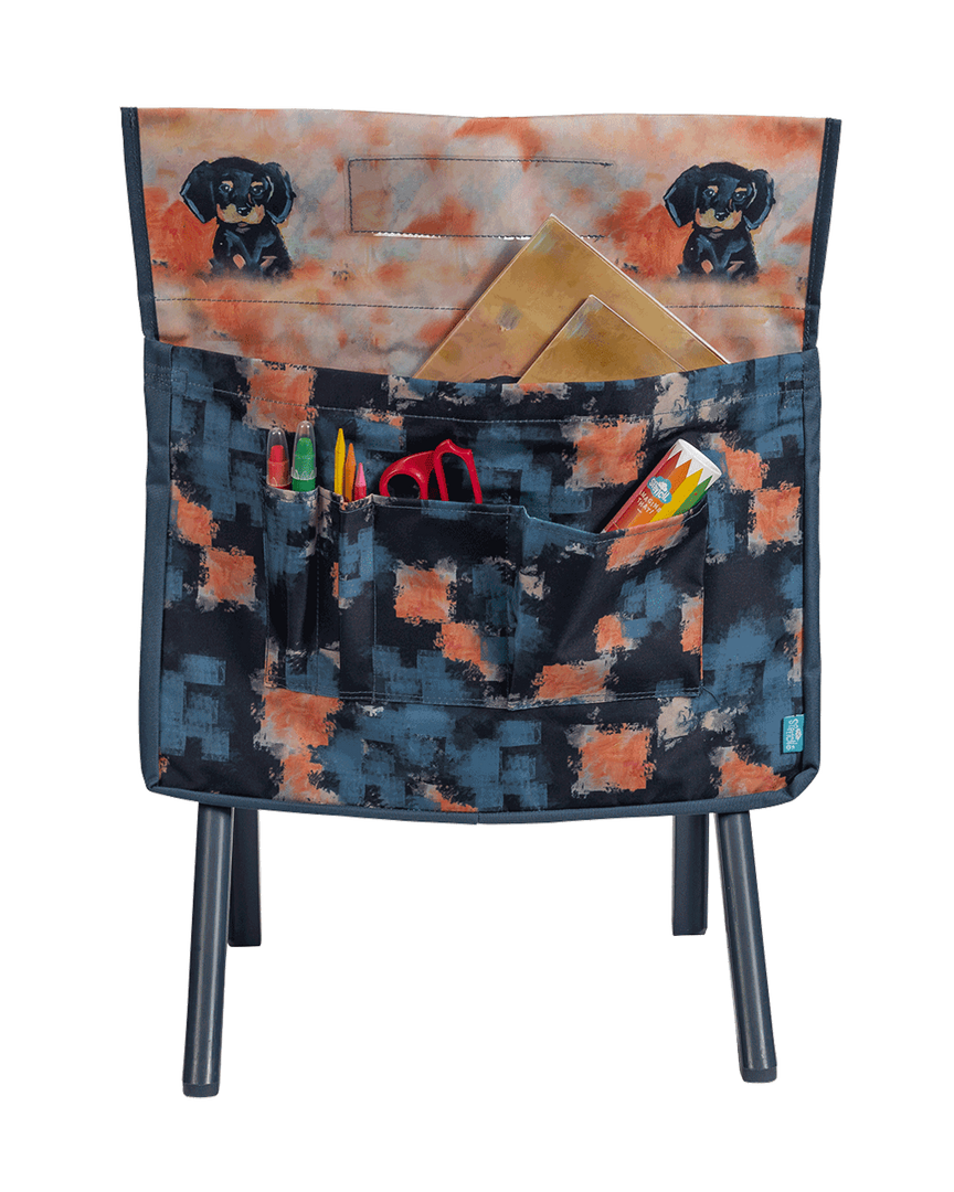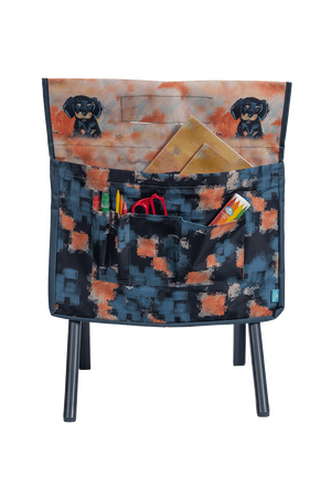 Chair Organiser - Shadow: This gorgeous range was produced in collaboration with Adelaide Schwarz when she was just 8 years old! Winner (8 Years and Under category) in the Spencil Art Prize 2021 for her entry “Dog (Shadow)”. You and the kids will love brightening up their desk area with this designer Chair Bag Organiser with back storage pocket and velcro fasteners to suit kids school chairs and home office/bedroom chairs. Turn your kid's ordinary chair into an added storage space. It's durable, it's spacious and can fit most school and at home kids chairs!