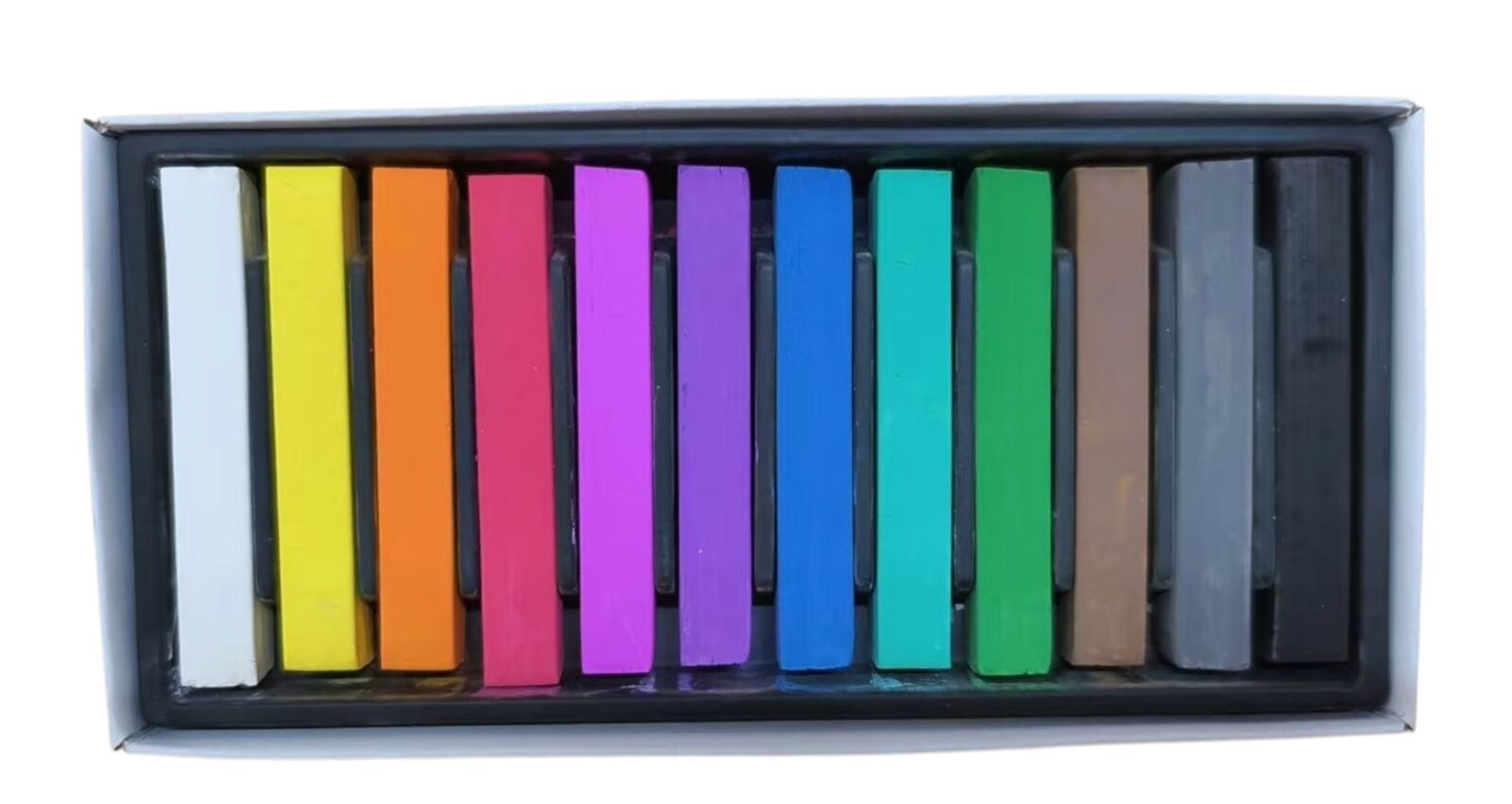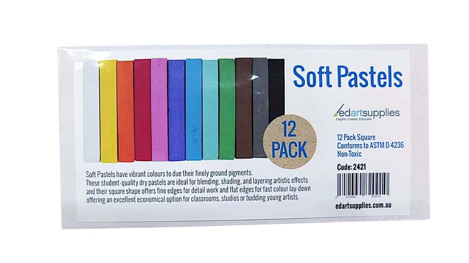 The Soft Chalk Pastels Pack of 12 are economical and great for layering, smudging and mark making. Best used on paper with a slight tooth. Set finished work with spray fixative.