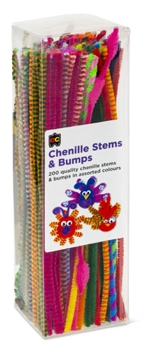 Inspire children's imagination with these high quality Chenille Stems which are perfect for any craft activity. Cut them, twist them, bend them, link them; the uses are endless. Packet of 200 assorted bright Standard and Bump Stems measuring 300mm x 6mm.