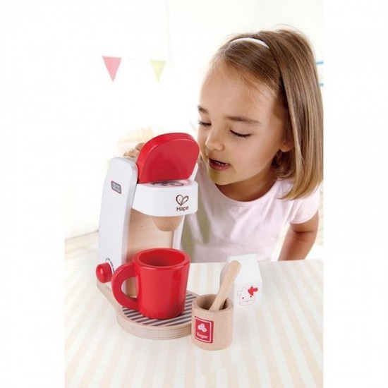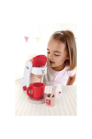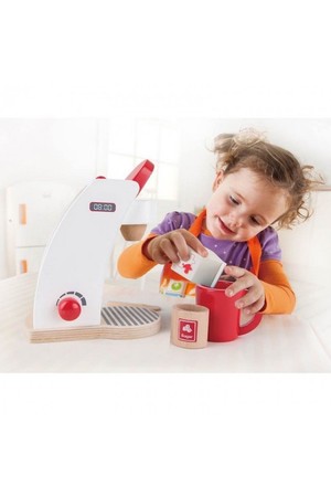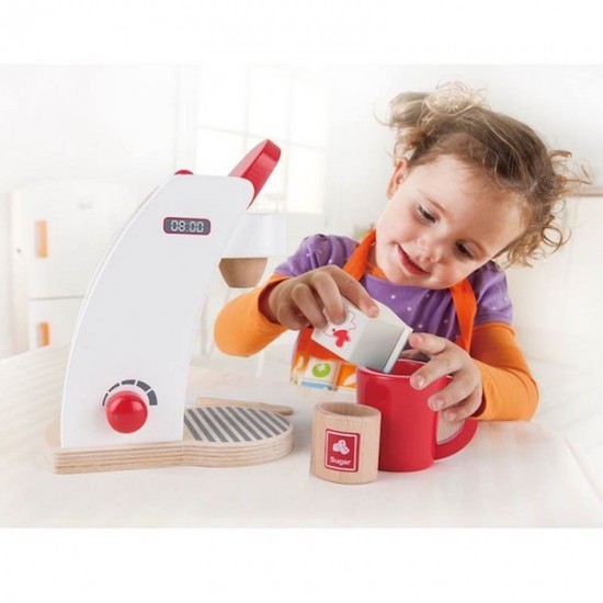 Budding baristas will love role playing with this gorgeous single-serve coffee maker. A superb addition to all kitchen, markets and cafe playsets, the Hape Coffee Maker comes complete with coffee cup, sugar jar and spoon and milk ready to create make-believe babyccinos, lattes and long blacks. Made of wood. Measures 26 H x 15 W x 20cm D. Ages 3yrs+