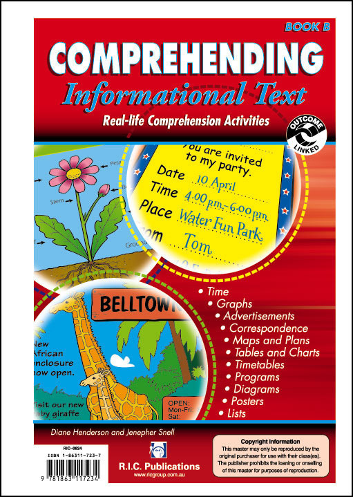 Comprehending Informational Text is a series of seven blackline masters which provide opportunities for students to locate and interpret information from a variety of informational (expository) texts. The books progress in level of difficulty using appropriate language and activities to suit each level.