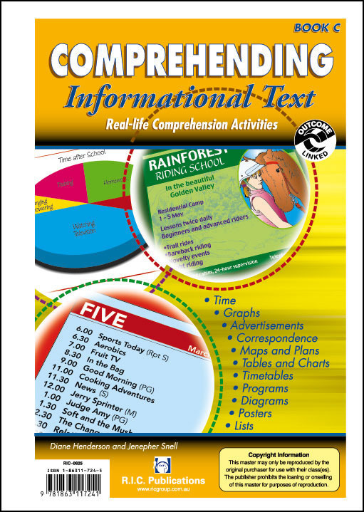 Comprehending Informational Text is a series of seven blackline masters which provide opportunities for students to locate and interpret information from a variety of informational (expository) texts. The books progress in level of difficulty using appropriate language and activities to suit each level.
