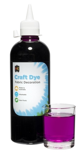 A 500ml bottle of simple and easy-to-use purple craft dye, suitable for a variety of projects. Ideal for hand painting, dye-bathing, stencilling, screen printing, resist techniques and many other applications.