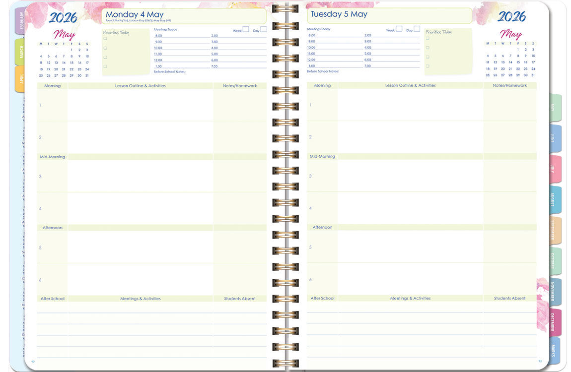 The Deluxe A5 Compact Planner 2026 (Daily) – Rainbow Fields brings together vibrant design and practical organisation in a conveniently sized format. Compact yet spacious, it offers all the features teachers need to stay on top of tasks, lessons, and meetings throughout the year.