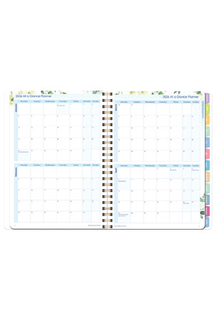 - Double-page monthly planners with tabs