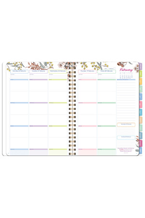 - Double-page monthly planners with tabs