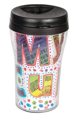 Personalise your own drinking cup. Artwork can be inserted down the side of cup.