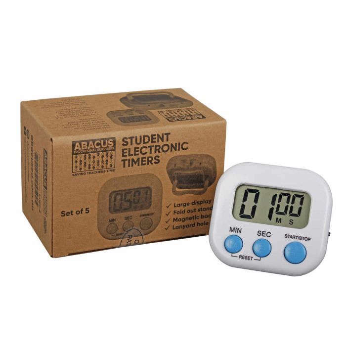 Each timer is capable of counting up to 99 minutes and 59 seconds, offering versatility for a variety of classroom activities. With features such as instant reset and a reverse timing mode, these timers are perfect for everything from laboratory experiments to sports day events. They also include a handy lanyard hole for easy portability.