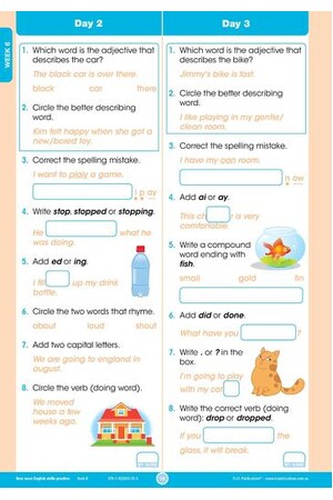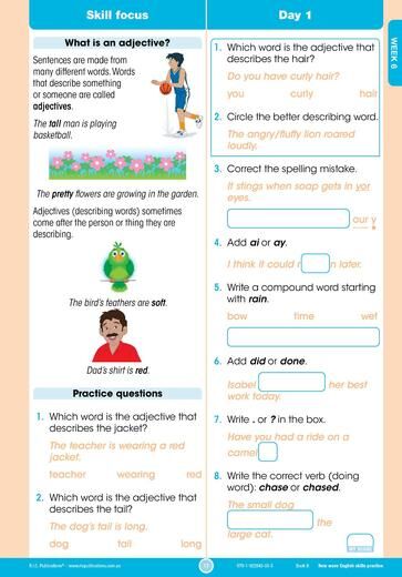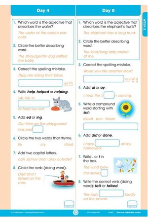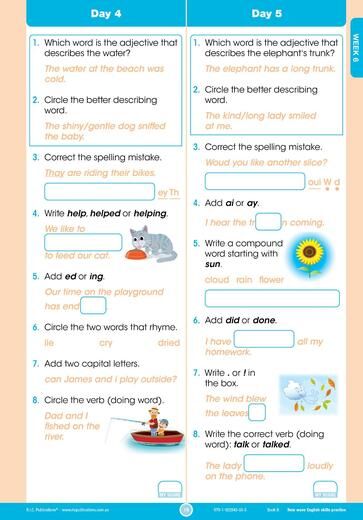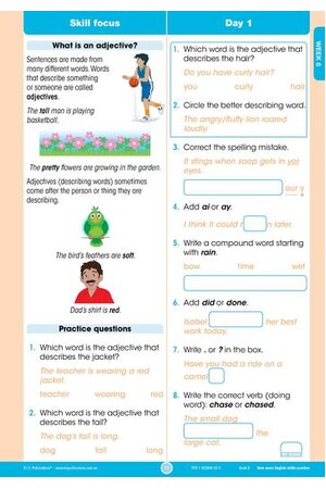 In this daily practice workbook for Year 2, there are questions to answer in the areas of phonological awareness, reading comprehension, spelling, word study, punctuation and grammar. The revised workbooks have 160 days of questions, broken into four groups of eight weeks. Skill focuses are included to help scaffold students with more challenging concepts that are covered throughout the books. A dedicated skill focus section provides students with daily practice of the focus skill, while the mixed questions will help students improve and consolidate their English skills as well as their knowledge about how language works.