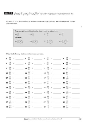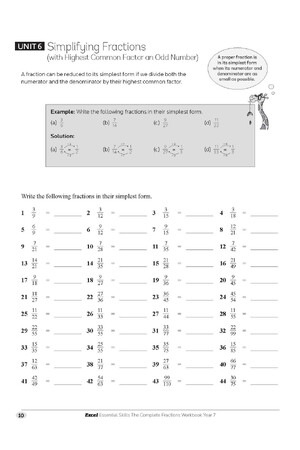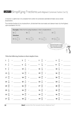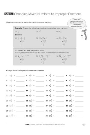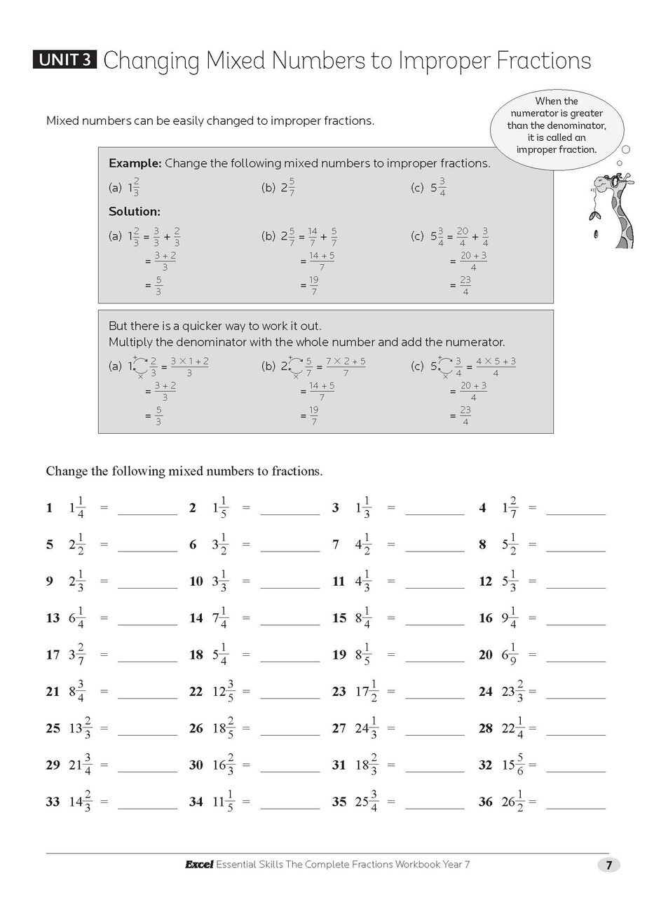 In Excel Complete Fractions Workbook Year 7 you will find: