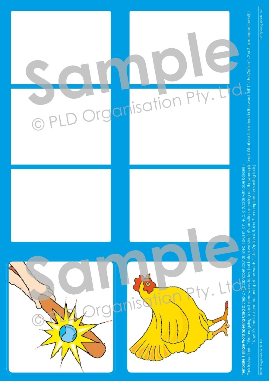 Designed by Speech Pathologists for teachers and parents, First Spelling Words – Set 1 for students aged 5 to 6, includes 51 activities in three different card templates in flip book format which increase in difficulty. Explicit instruction cards with seven recommended options for use are included with the card templates. The single word spelling cards are divided into 4 progressive steps CVC words which the resource: