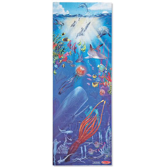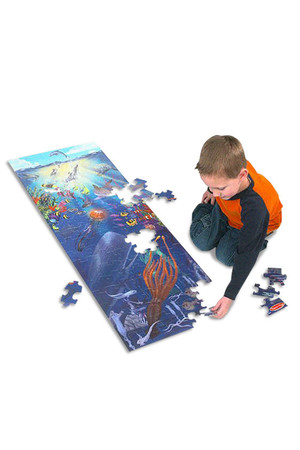 The colourful, exotic world of the ocean depths is beautifully portrayed in this educational floor puzzle. Filled with fascinating flora and aquatic fauna, children will love exploring and learning with this detailed cardboard floor puzzle. Over four feet long when assembled, the 100 extra-thick pieces feature an Easy-Clean surface to keep them looking like new.