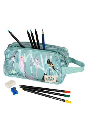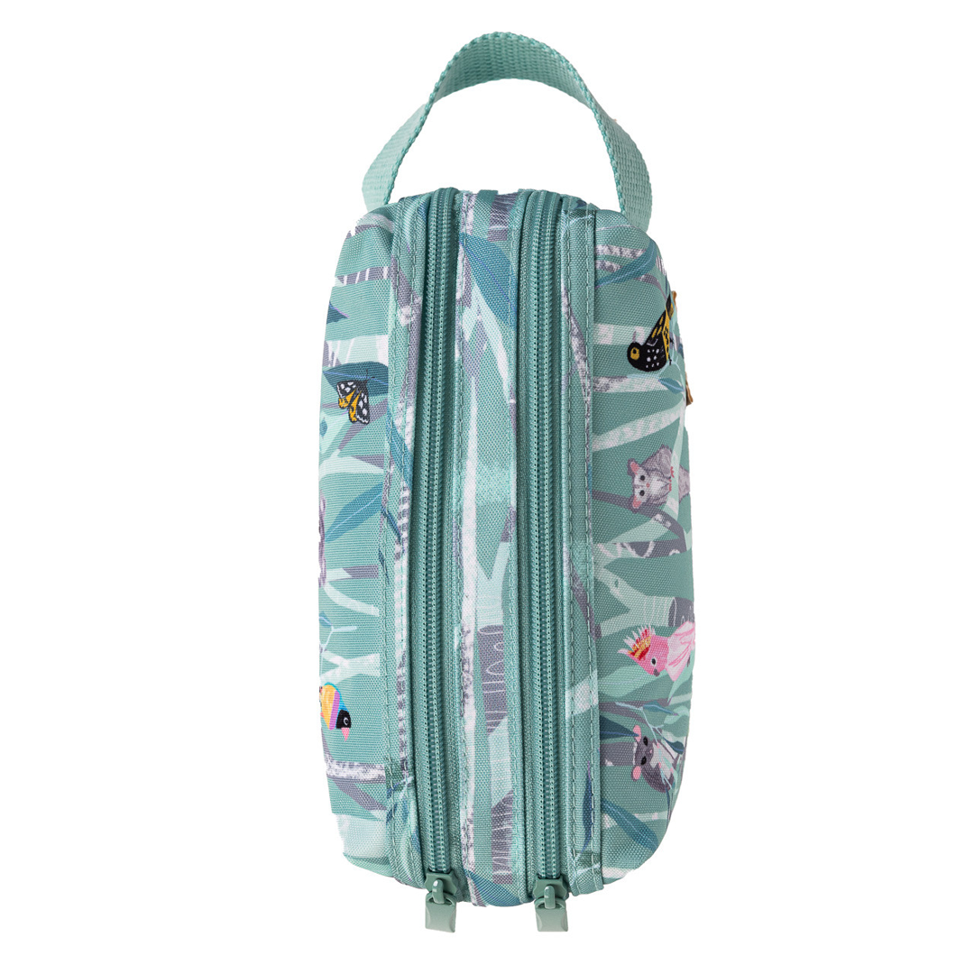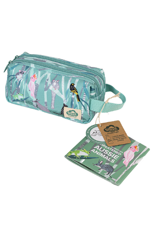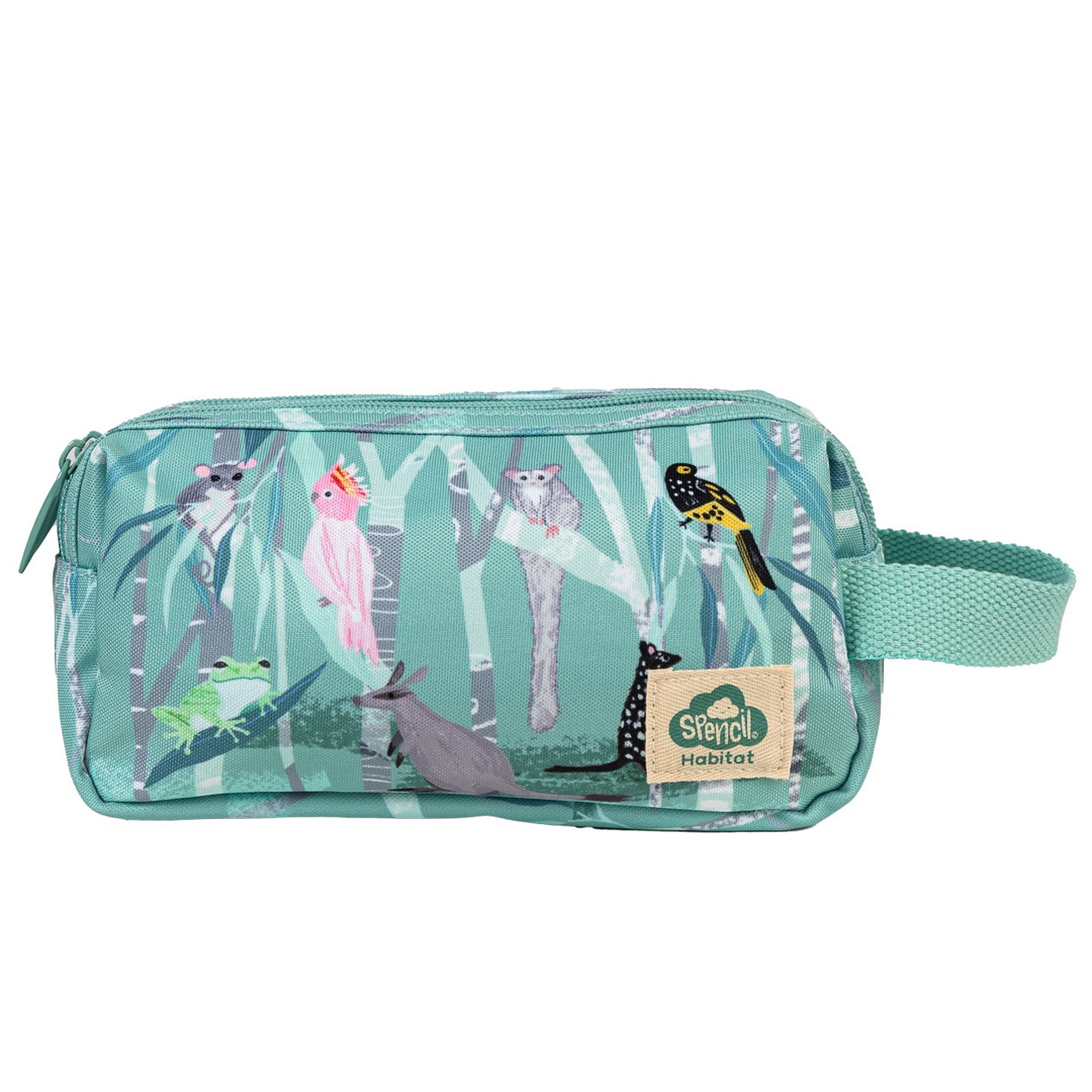 Part of the new Habitat range in collaboration with the Australian Wildlife Conservancy Two roomy zip-up compartments for easy organisation Sturdy cotton web handle for grab-and-go convenience Multi-use: pencil case, toiletry bag, travel pouch and more Features the Threatened Aussies print with 16 hand-illustrated native species Includes a Threatened Aussies Booklet filled with cool animal facts and conservation info Made from Recycled Polyester (RPET) from repurposed plastic waste– no PVC or silicone A portion of each product sold supports the Australian Wildlife Conservancy Dimensions: L 21 x D 9 x H 10cm