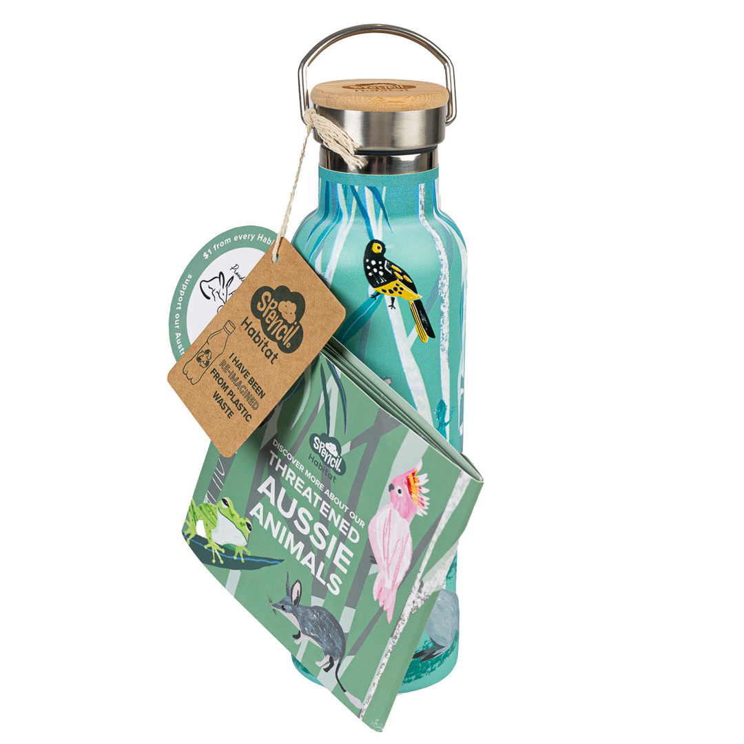 Habitat Insulated Water Bottle 600ml - Threatened Aussies: Habitat range, created in collaboration with the Australian Wildlife Conservancy! Part of our exciting new Habitat range, this insulated drink bottle is more than just hydration - it’s a celebration of Australia’s incredible yet vulnerable wildlife. Showcasing our stunning Threatened Aussies print, young Aussies can learn more about our fragile natural world through 16 hand-illustrated endangered species, each of these animals brought to life with colour, curiosity and care.