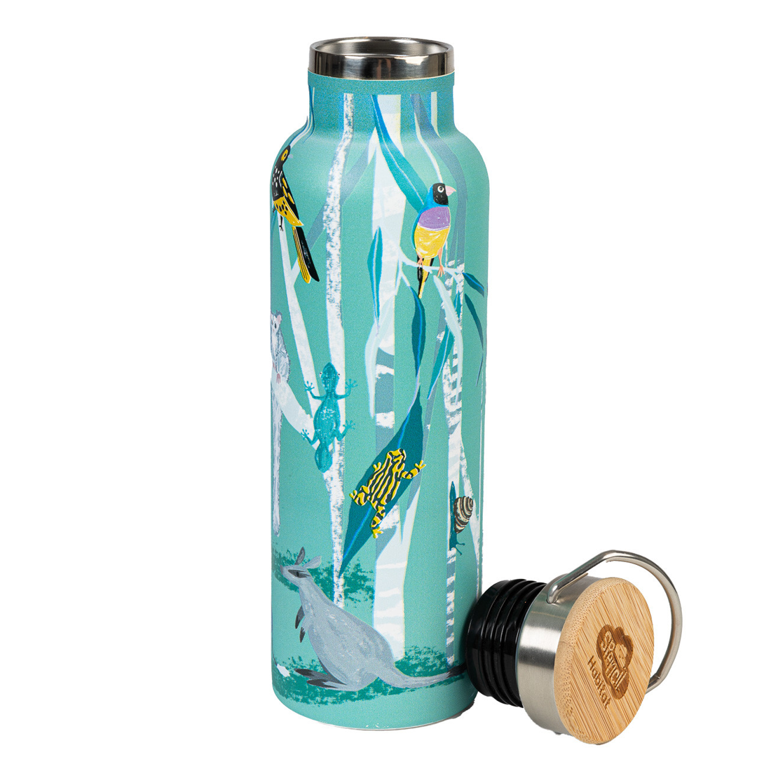 Part of the Habitat range – designed to inspire care and curiosity for our Aussie wildlife; Features our new Threatened Aussies print all over the bottle – featuring 16 endangered native animals Built to keep kids hydrated all day – insulated by its copper plated inner and outer walls with vacuum in between, it gives awesome triple-layer thermal protection Keeps cold liquids cold for 24 hours and hot for 8 hours Durable stainless steel with powder-coated body, bamboo-pattern screw-on lid and stainless steel carry handle BPA-free and built to last Includes mini Threatened Aussies fact booklet $1 from every sale goes directly to the Australian Wildlife Conservancy, helping protect our one-of-a-kind wildlife Dimensions: 24.5cm high x 7.4cm diameter