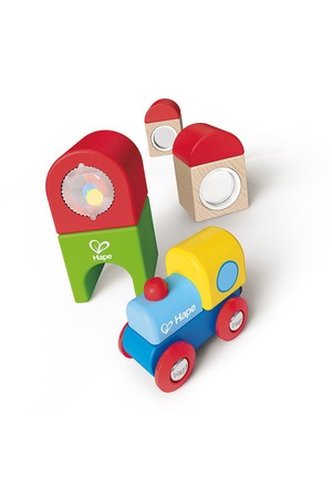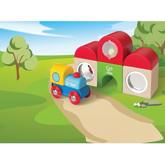 Build a bustling train station from the ground up. When engaged in play with this set, young children can recognise sound, practice grasping objects and observe motion.