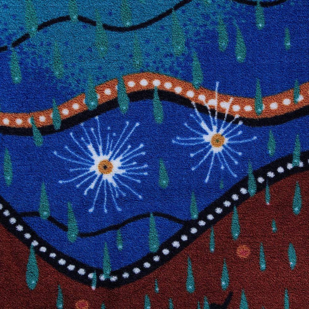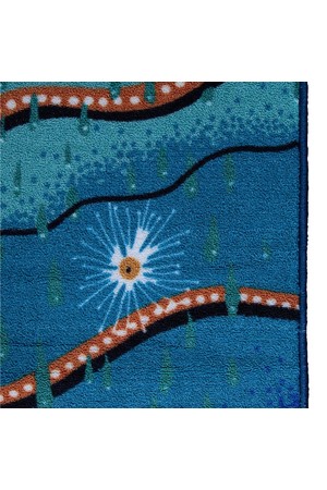 This original and stunning carpet is a unique piece of Indigenous Art which will bring character and light to any room. A truly inspiring design which tells us how important it is to listen to the land of this vast country and respect our Indigenous culture.