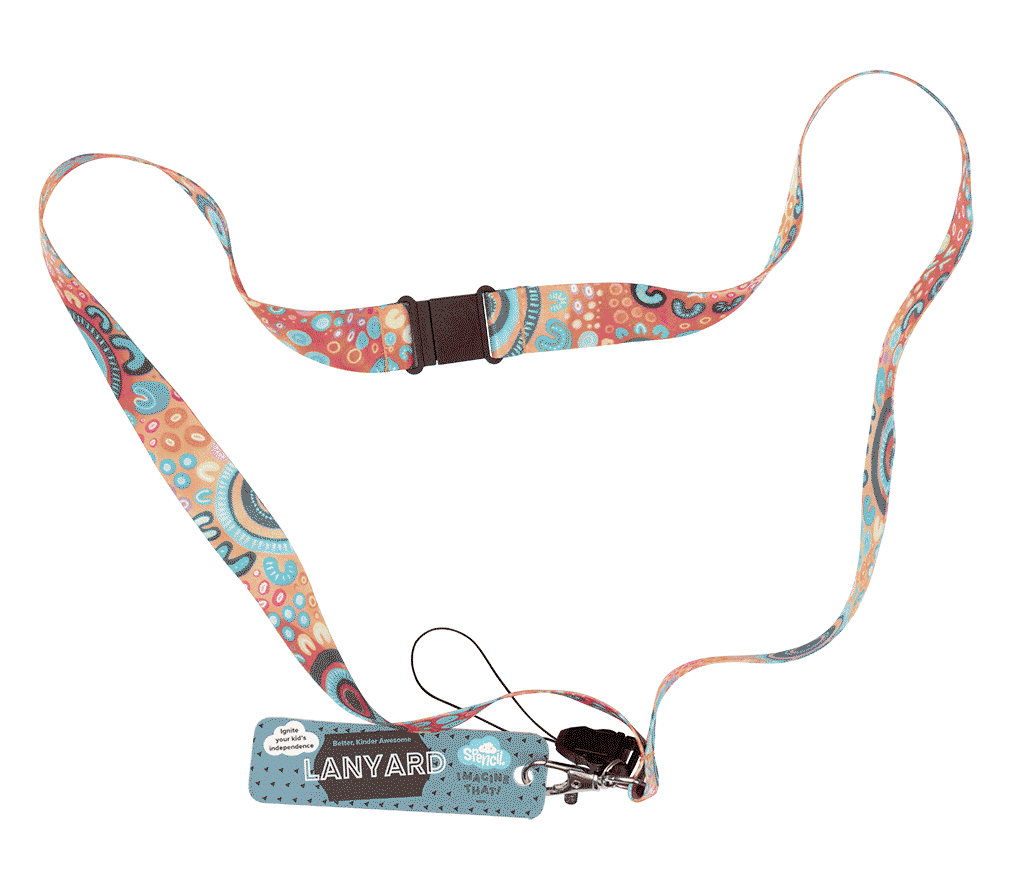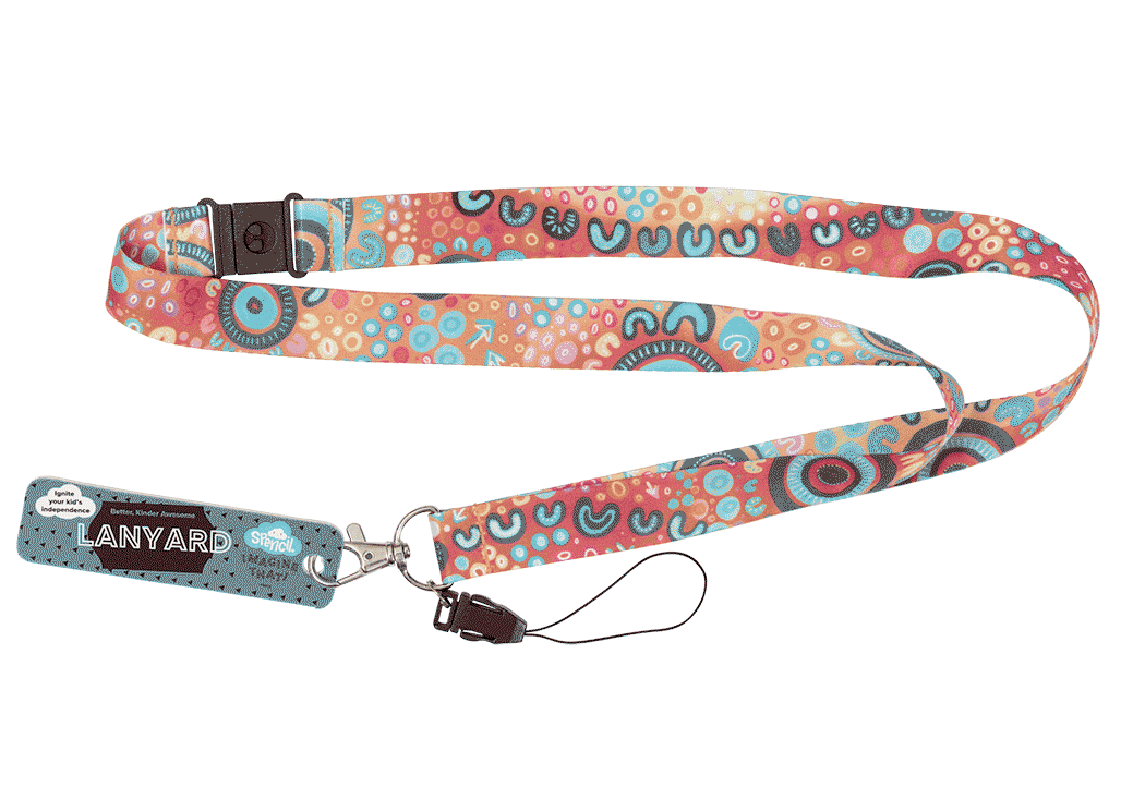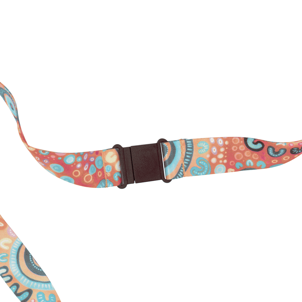 Lanyard - Ngootypoorteen: Bayley Mifsud, the artist behind Merindah-Gunya, creates vibrant Aboriginal art that celebrates culture and storytelling. Her piece "Ngootypoorteen" beautifully illustrates the journey of children through their childhood, focusing on growth, friendship, and a deep connection to the land. The artwork reflects Bayley’s passion for expressing the beauty and significance of Aboriginal culture and traditions through contemporary art. Her work invites her audience to explore the stories woven into each piece, offering a colourful and meaningful connection to the rich heritage she represents.