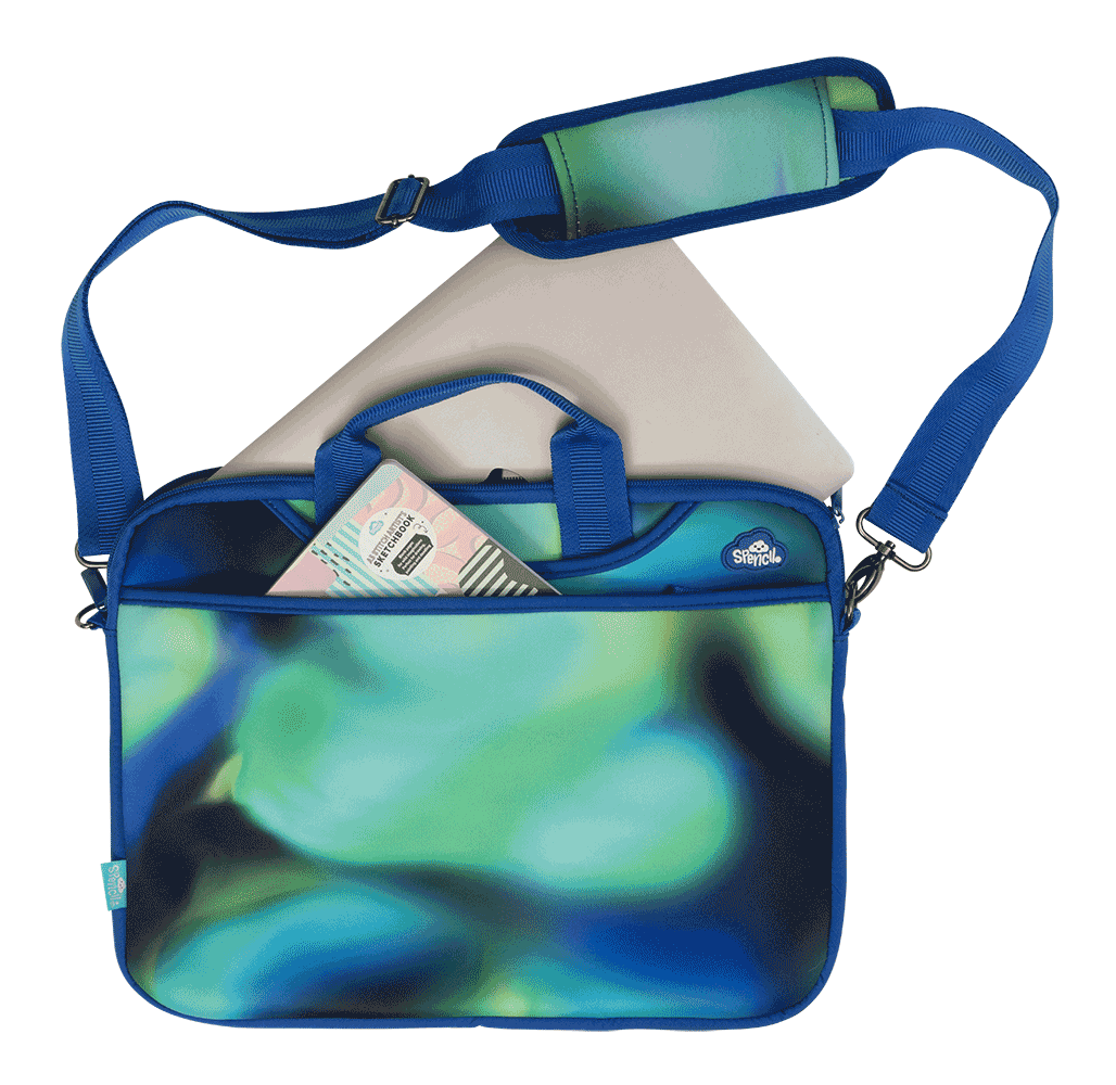 Laptop Bag - Galactic Glow: Lightweight, durable, and functional, this neoprene laptop bag is ideal for the older kids carrying their precious tech to, from and around school. Designed to protect laptops from bumps, scratches, and dirt. Stylish as it's functional, our laptop bag is made from high-quality neoprene materials. With padded lining and deep side pockets to fit their mouse, cables and all their other accessories or notebooks. Fits devices up to 15 inches wide.KEY FEATURESSoft, neoprene scratch protective fabric Adjustable shoulder strap 2 adjustable padded, carry handles 1 main tech compartment with double zip 2 deep side compartments for lead storage with velcro tab Write on name label (inside at back)