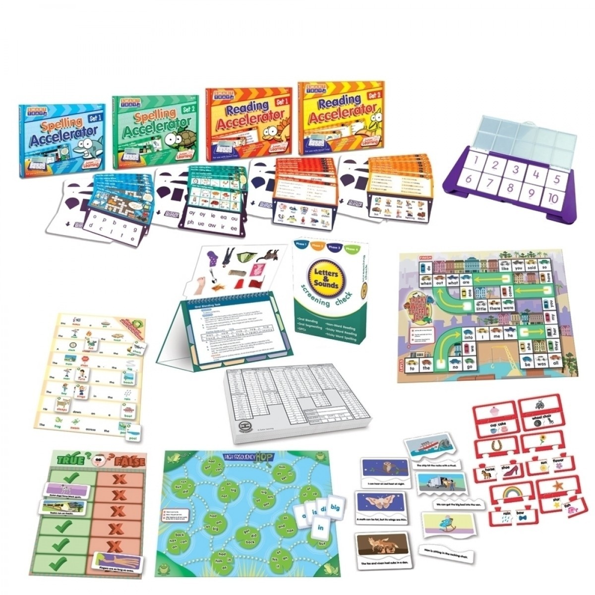 This Catch-Up Kit provides a collection of resources for helping students reach their level. This value kit includes Letters and Sounds screening check, letter sound flashcards, phonics flashcards, decoding flashcards, and 6 reading games. All resources have been specifically designed according to the synthetic phonics progression in Letters and Sounds. Combines letter, word and text level work with multi-sensory games, books and activities. Comes with free tray for easy storage. Represents excellent value. A comprehensive classroom resource.