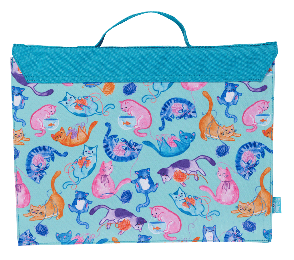 Strong top handle for easy carrying PVC coated fabric for extra strength Velcro fastening Name pocket Fits all standard school books including the larger scrapbooks