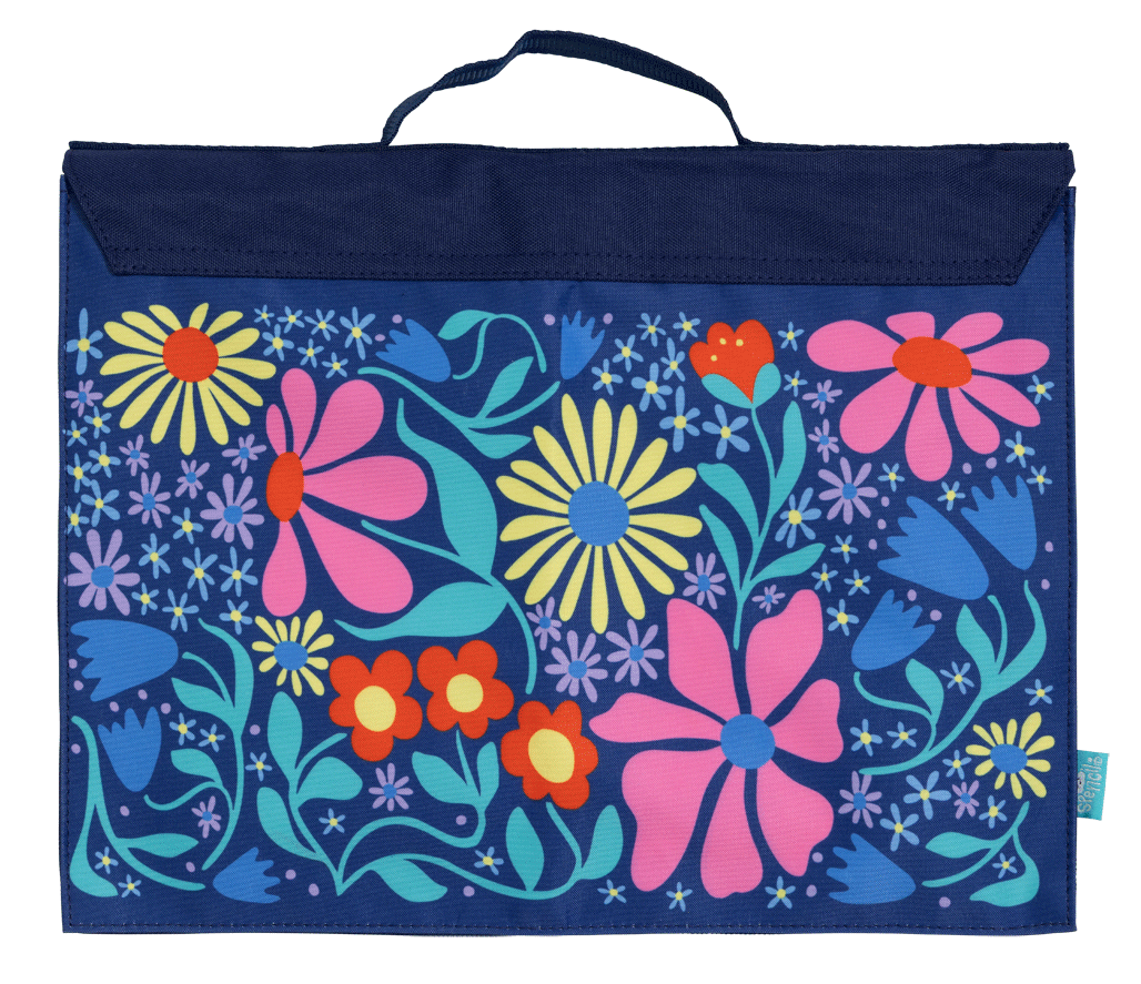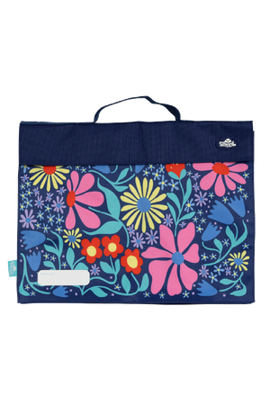 Library Bag - Flower Fun: Bright, bold, and blooming with personality! Flower Fun is full of colourful petals dancing on a deep navy background - perfect for kids who love to stand out with a splash of playful style. It's a floral fiesta made to turn heads!