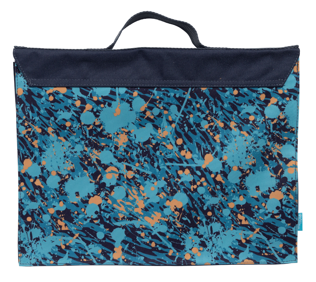Strong top handle for easy carrying PVC coated fabric for extra strength Velcro fastening Name pocket Fits all standard school books including the larger scrapbooks