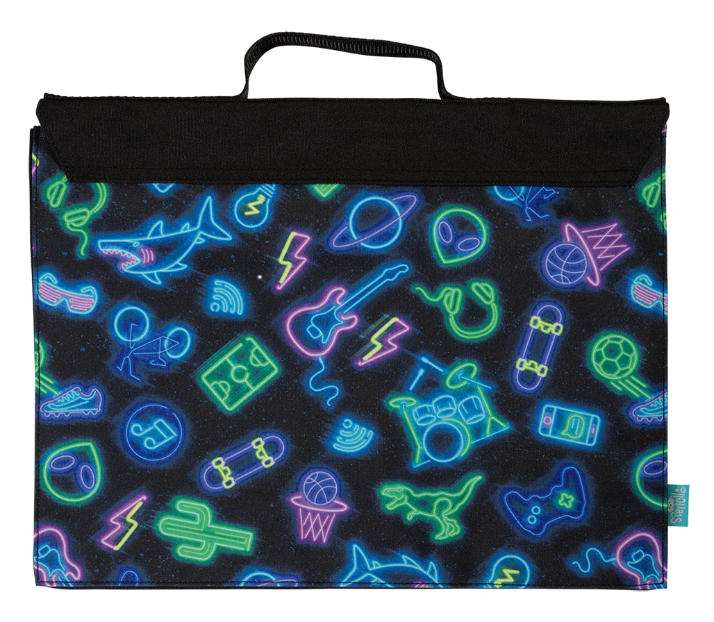 Library Bag - Neon Life: Calling all book worms! This gorgeously designed library bag has room for all your kid's essential books. Featuring a PVC coating, nylon inner and velcro fastening, this bag also sports a name pocket and handle. Your child can take this cute and stylish library bag anywhere they want - library, dance classes, swimming, art classes, music lessons and more - all while keeping books or homework safe and protected!