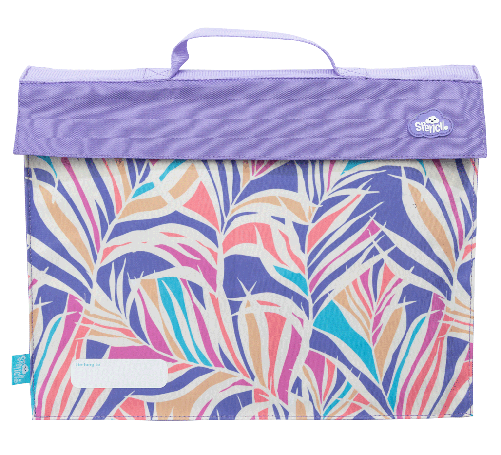 Strong top handle for easy carrying PVC coated fabric for extra strength Velcro fastening Name pocket Fits all standard school books including the larger scrapbooks