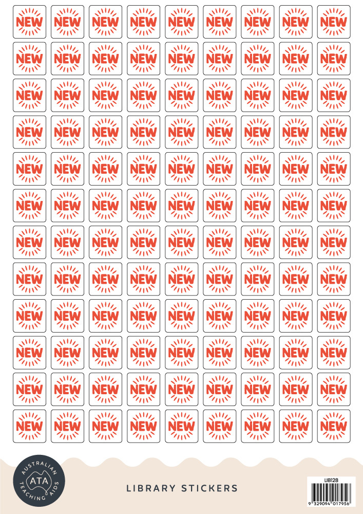 At 19mm x 19mm, these round stickers are the ideal size for book spines and new media additions, with a standout design featuring the word 'NEW' in bright red with radiating lines to capture the excitement of fresh content. Printed in Australia, the stickers maintain the highest quality in both adhesive and print longevity.