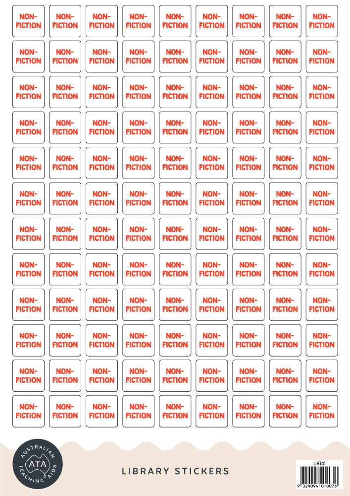 Sized at 19mm x 19mm, these stickers are crafted to be prominently visible on book spines. Featuring bold, red text on a clear background, the stickers stand out, making it easy for patrons to locate non-fiction resources. Each sticker is designed and printed in Australia, adhering to high standards of production for durability and clarity.