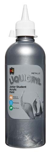 500ml bottle of Silver-coloured Liquicryl Metallic Junior Acrylic paint.