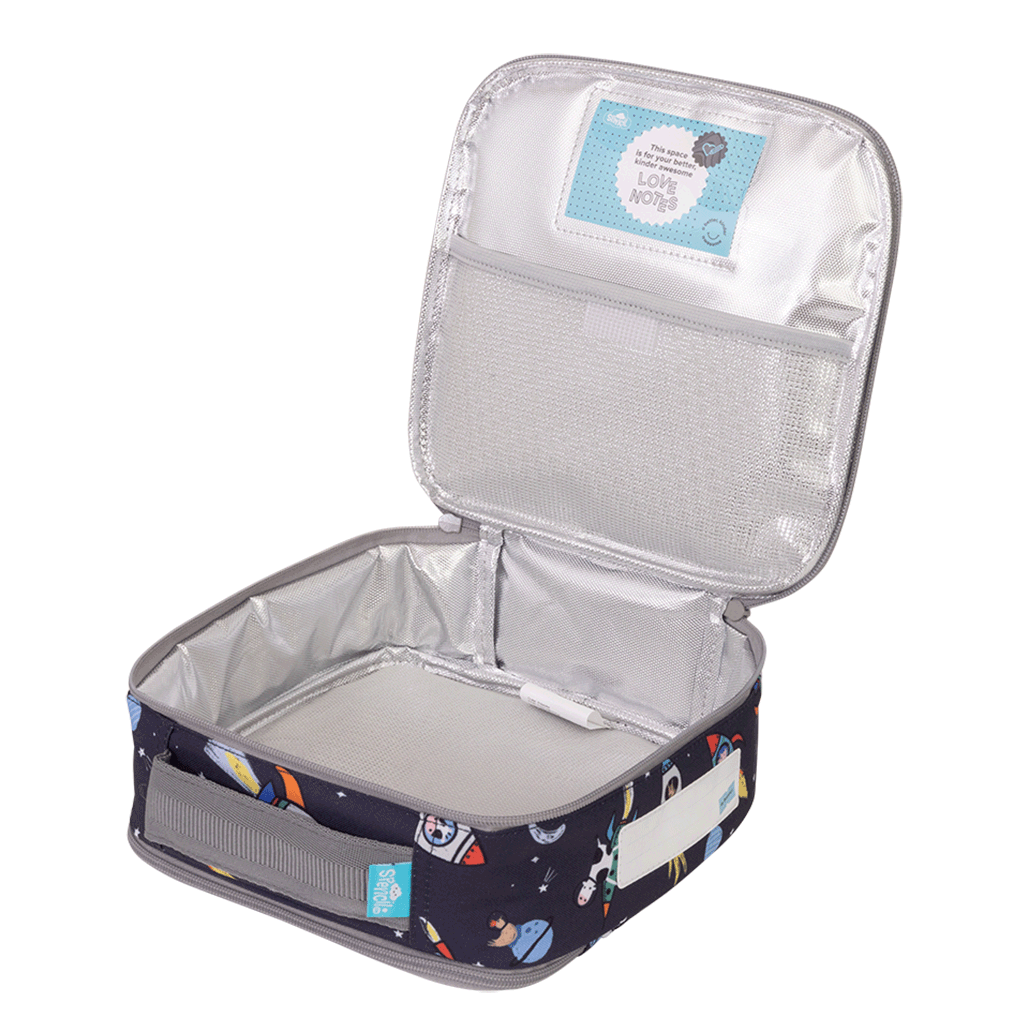 It's perfect for fitting the Spencil Little Chill Pack (Sold seperately) with room to spare for fruit or small containers! With aluminium food-safe silver lining, a back zip pocket that perfectly fits the Little Chill Pack, an outside name card pocket and an additional inside pocket for 'Love Notes', this is your go-to lunch bag for school and play!