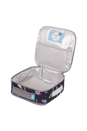 Machine washable Aluminium food-safe insulated lining to keep contents fresher for longer Front zip pocket Dual zip main compartment - easy to open and close Back zip pocket that perfectly fits the Little Chill Pack Thicker, padded handle Outside clear name card pocket 1-compartment mesh pocket inside lid with velcro seal Made with long-lasting durable fabrics Weight: Approx. 215 grams