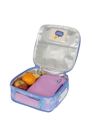 Machine washable Aluminium food-safe insulated lining to keep contents fresher for longer Front zip pocket Dual zip main compartment - easy to open and close Back zip pocket that perfectly fits the Little Chill Pack Thicker, padded handle Outside clear name card pocket 1-compartment mesh pocket inside lid with velcro seal Made with long-lasting durable fabrics Weight: Approx. 215 grams